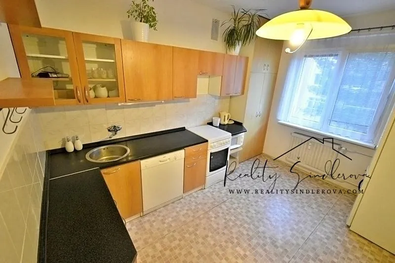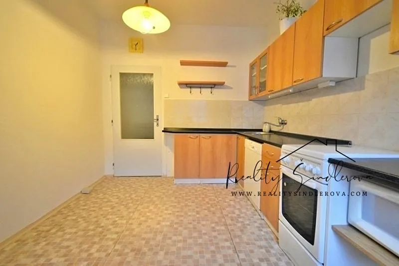 V kuchyni je dostatečný prostor pro jídelní kout. Kuchyňská linka disponuje pouze kombinovaným sporákem (vaření plyn, pečení elektřina), dále bude součástí lednice a mikrovlnná trouba. Jiné kuchyňské spotřebiče nebudou součástí nájmu.