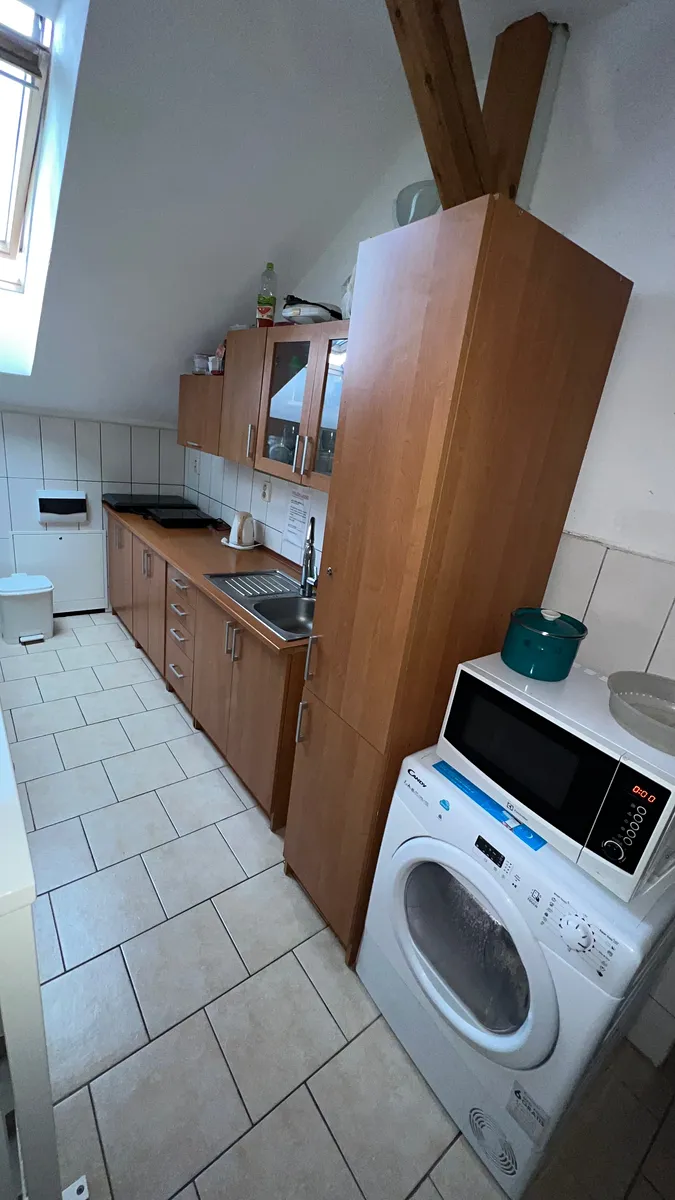 Ve společné chodbě máte k dispozici plně vybavenou kuchyňskou linku s moderními spotřebiči: