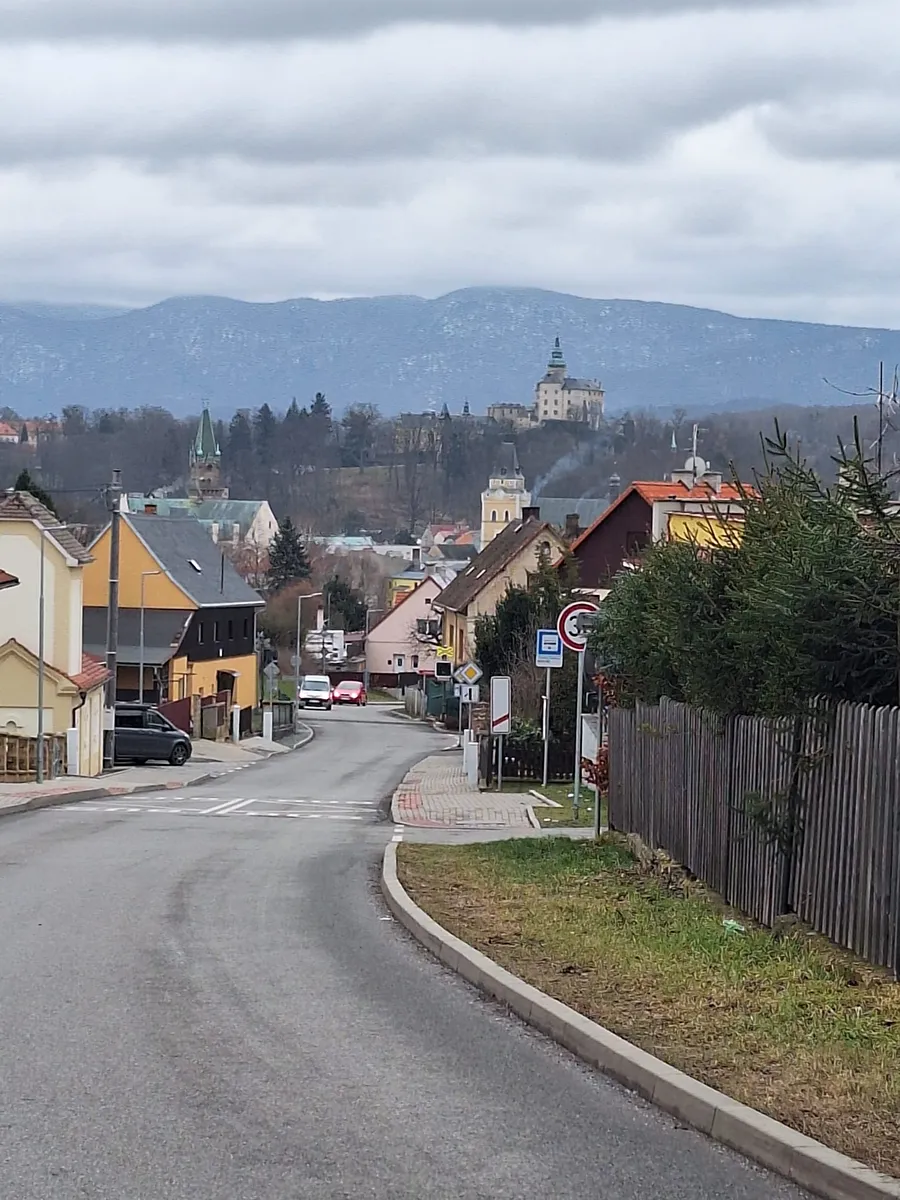 v kopci s nádherným výhledem na město, okolní hory a zámek