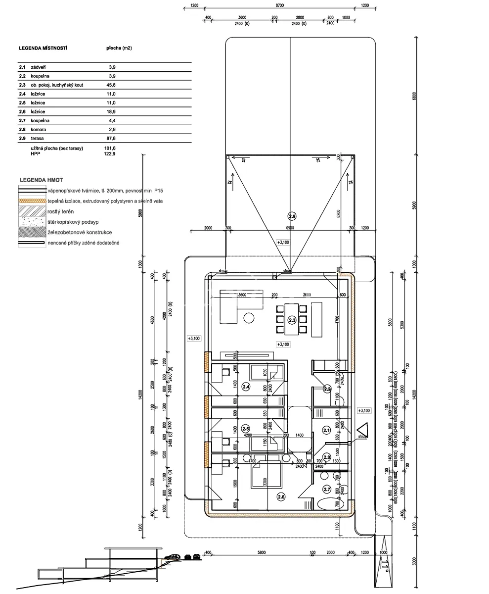 Dle územního plánu se jedná o OB-A čistě obytné, plochy pro bydlení. Vydané stavební povolení umožňuje výstavbu třípodlažní vily (včetně FVE na střeše) o užitné ploše 305 m2, 241 m2 teras a parkování pro 4 auta.