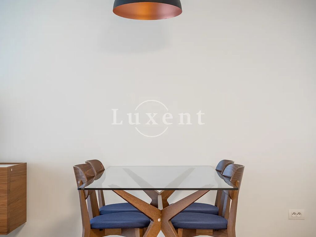 Dispozice zahrnují prostornou a světlou obývací místnost, moderní kuchyňský kout nadstandardně vybavený všemi spotřebiči, ložnici s vlastní koupelnou s vanou, sprchovým koutem, toaletou a bidetem, předsíň a oddělenou toaletu s pračkou.