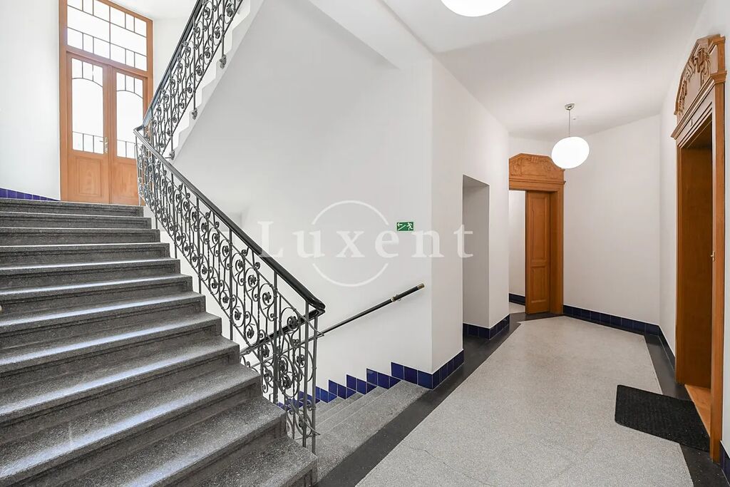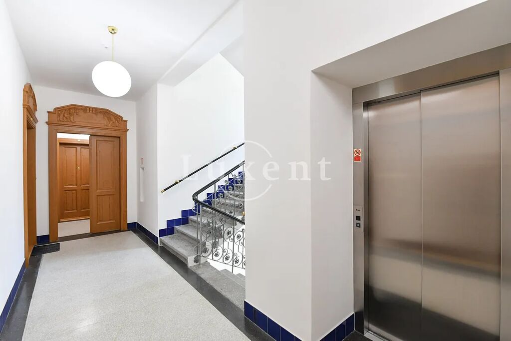 Interiér bytu nabízí elegantní kombinaci stylu a funkčnosti. Podlahy jsou z kvalitního dubového dřeva, úložný prostor zajišťují vestavěné skříně a komfort bydlení doplňuje klimatizace. V bytě jsou nově osazená okna s dvouvrstvým zasklením, která přispívají k výborné tepelné i zvukové izolaci. K dispozici jsou také moderní spotřebiče – pračka kombinovaná se sušičkou. Vytápění celého objektu je řešeno prostřednictvím centrální plynové kotelny. K bytu náleží sklepní kóje o výměře 1,9 m2. Obyvatelé domu mohou rovněž využívat příjemnou společnou zahradu ve vnitrobloku, ideální k relaxaci.