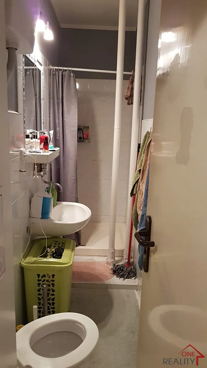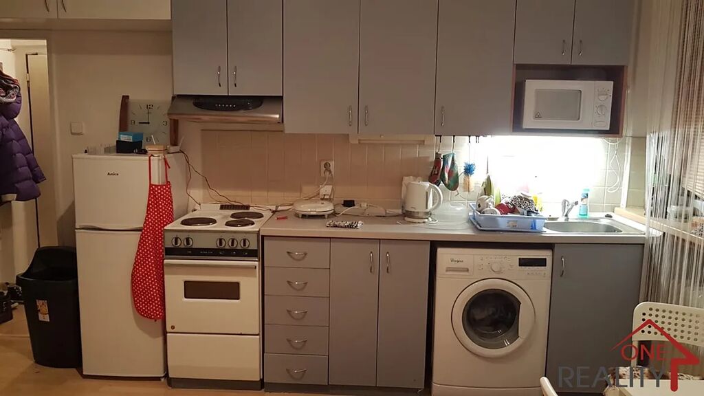 Dispozice bytu: vstupní chodba , obývák s kuchyňskou linkou včetně sporáku, lednice, pračky, mikrovlnné trouby, jídelního stolu s židlemi a skříní v ložnici, dále koupelna se sprchovým koutem a WC.