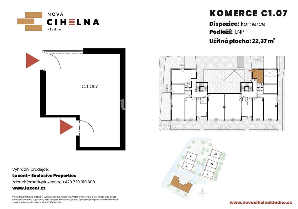 Nabízíme k prodeji komerční jednotku o užitné ploše 22,37 m2 v mimořádně úsporném developerském projektu Nová Cihelna Kladno vznikajícím v městské čtvrti Kladno – Rozdělov.