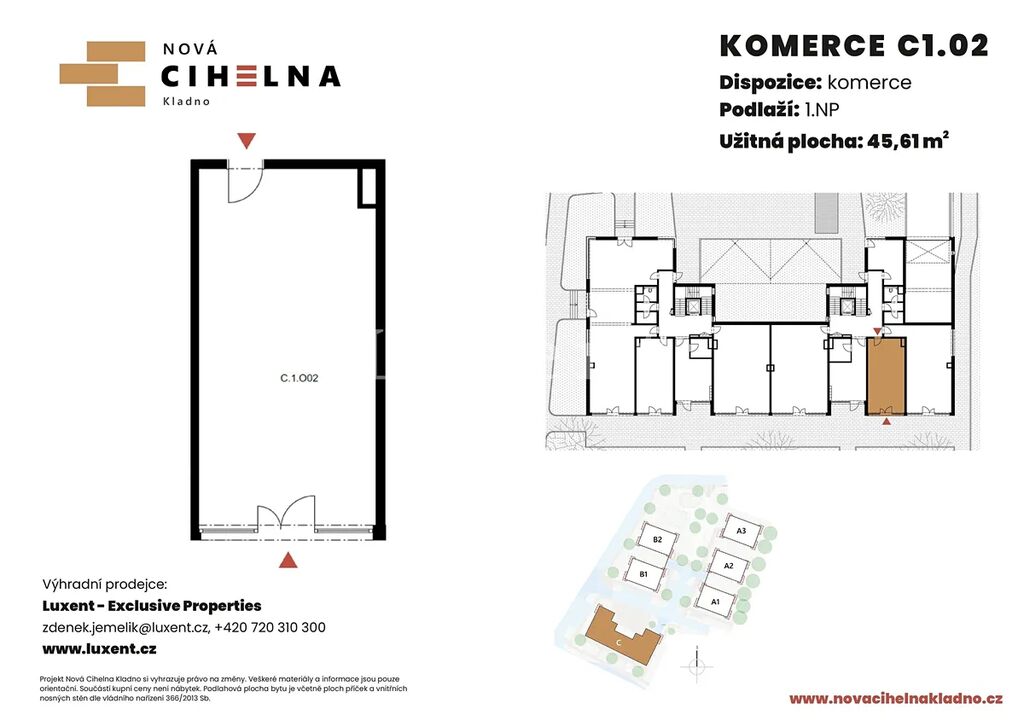 Nabízíme k prodeji komerční jednotku o užitné ploše 45,61 m2 v mimořádně úsporném developerském projektu Nová Cihelna Kladno vznikajícím v městské čtvrti Kladno – Rozdělov.