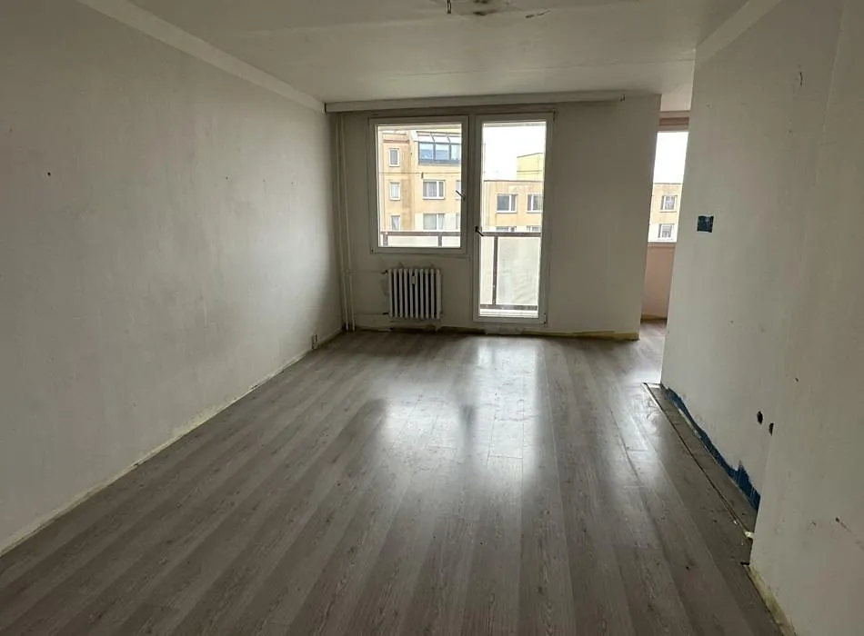 Pronájem bytu 11.patro v panelovém domě .Byt je před rekonstrukcí. Skládá se ze dvou neprůchozích pokojů a velkého obývacího pokoje s lodžií a se vstupem do kuchyně.