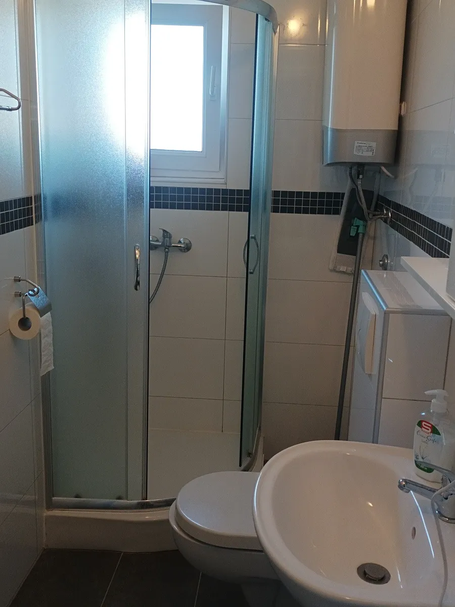 Apartmán je dispozice 2 kk, obytné plochy 35 m² a skládá se z obývacího pokoje s kuchyní a jídelnou, ložnice, koupelny a balkonu s krásným výhledem do zeleně a k moři.
