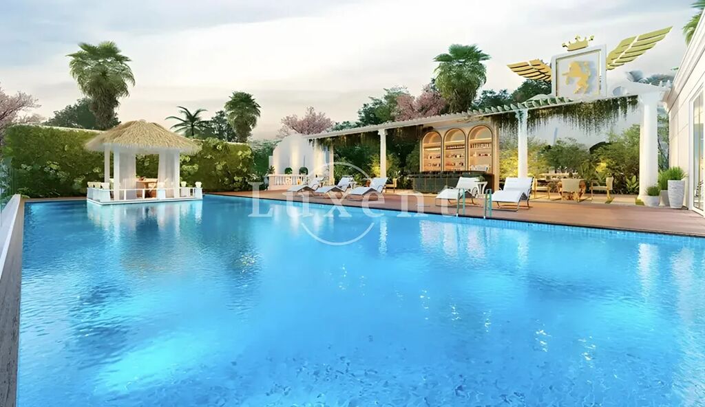 Apartmán má prostorný balkon s soukromým bazénem a venkovním posezením. Jednotka disponuji dvěma ložnicemi, třemi koupelnami a velkým obývacím pokojem s kuchyni. Interiér je nadčasově zařízený. Budoucí majitelé se mohou těšit na fitness a wellness centrum. Rezidentům je k dispozici komunitní park, meditační prostory, sky lounge bar, prémiový business salonek a coworkingový prostor. K apartmánu náleží i parkovací stání. V projektu se klade velký důraz na kvalitu a design.