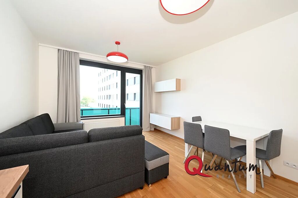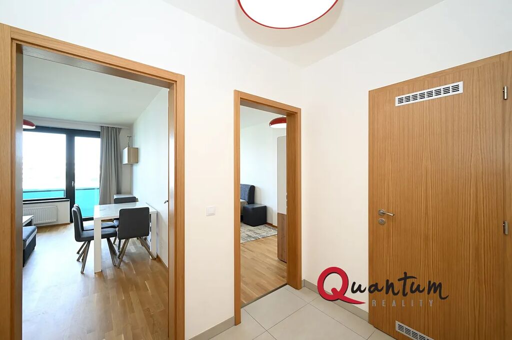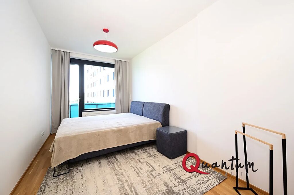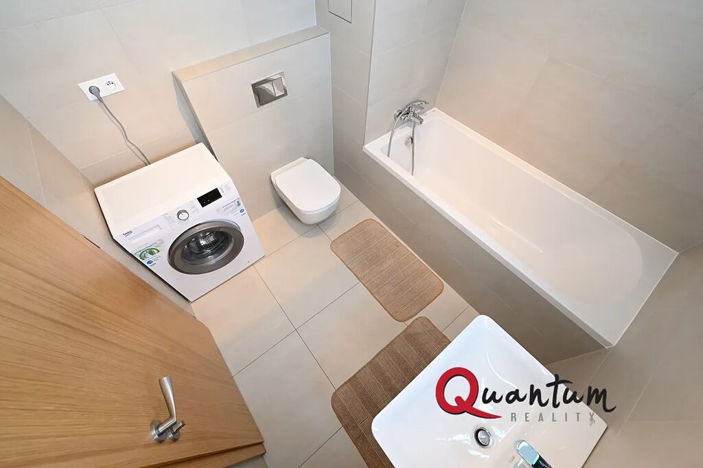 Tento byt se nachází ve 4. nadzemním podlaží novostavby a jeho podlahová plocha činí 50 m2. Byt je vybaven moderním nábytkem a spotřebiči, které splní všechny vaše požadavky na pohodlné bydlení. Prostorný obývací pokoj. Kuchyňská linka disponuje myčkou, lednicí, mrazákem, indukční varnou deskou, elektrickou troubou a digestoří. Ložnice je zařízena pohodlnou postelí a šatní skříní. Moderní koupelna nabízí vanu, toaletu a pračku. Dále se nachází v bytě prostorná komora, kterou můžete využít jako šatnu. Byt je také vybaven venkovními žaluziemi, které poskytují optimální regulaci světla a soukromí. Lodžie je průchozí jak z obývacího pokoje, tak i z ložnice.