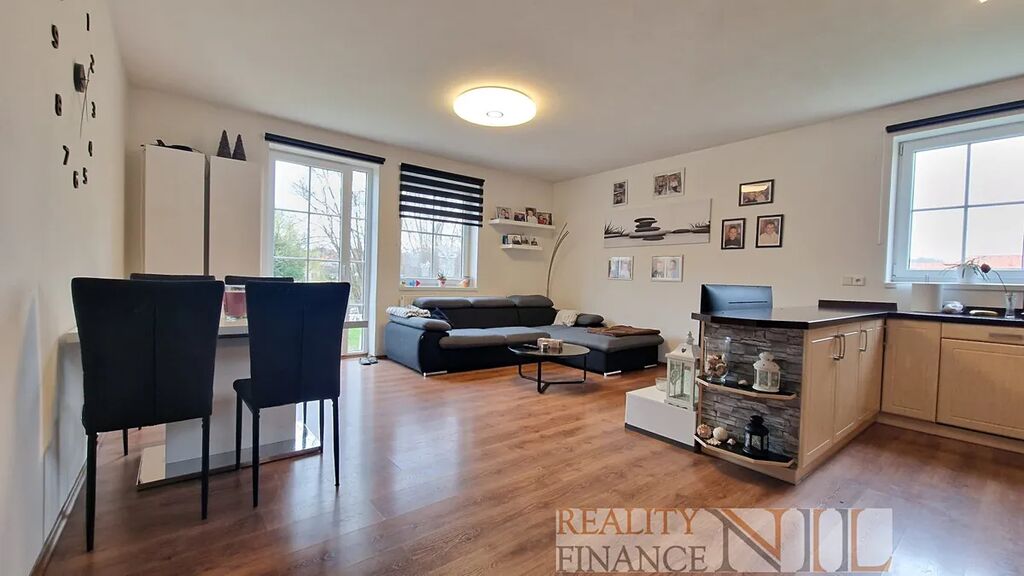 Byt je vybavený kuchyňskou linkou s vestavěnými spotřebiči - indukční varná deska, el. trouba, myčka, digestoř. Koupelna je vybavena sprchou i vanou, podlahy jsou plovoucí + dlažba v předsíni, WC je zvlášť. Topení a teplou vodu zajišťuje centrálně plynový kotel pro celý dům.
