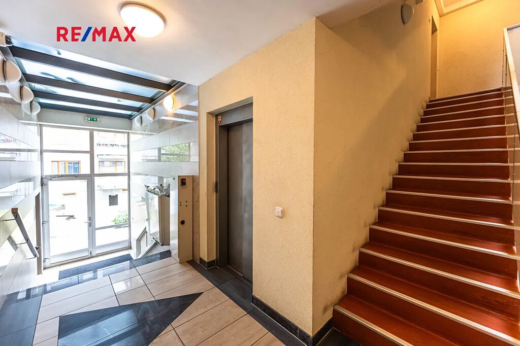 K dispozici je rovněž sklepní kóje v suterénu domu (2,8 m²) a garážové stání. V domě je kolárna/kočárkárna i plošina pro bezbariérový přístup. Dům je velice dobře udržován, je zde celkem 18 bytů a příjemné společné prostory.