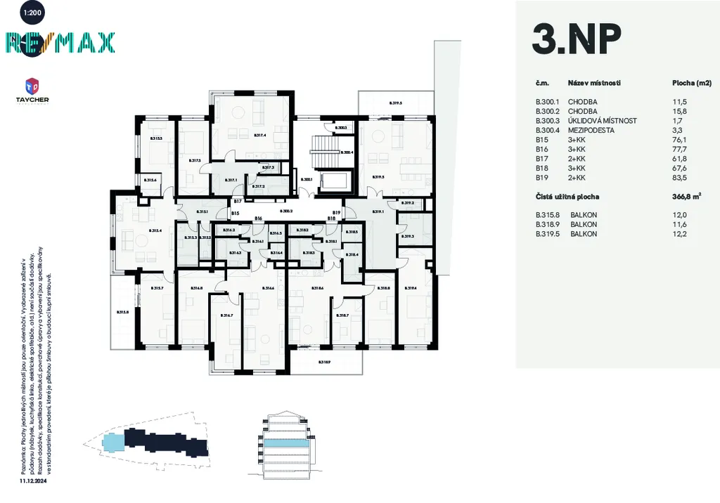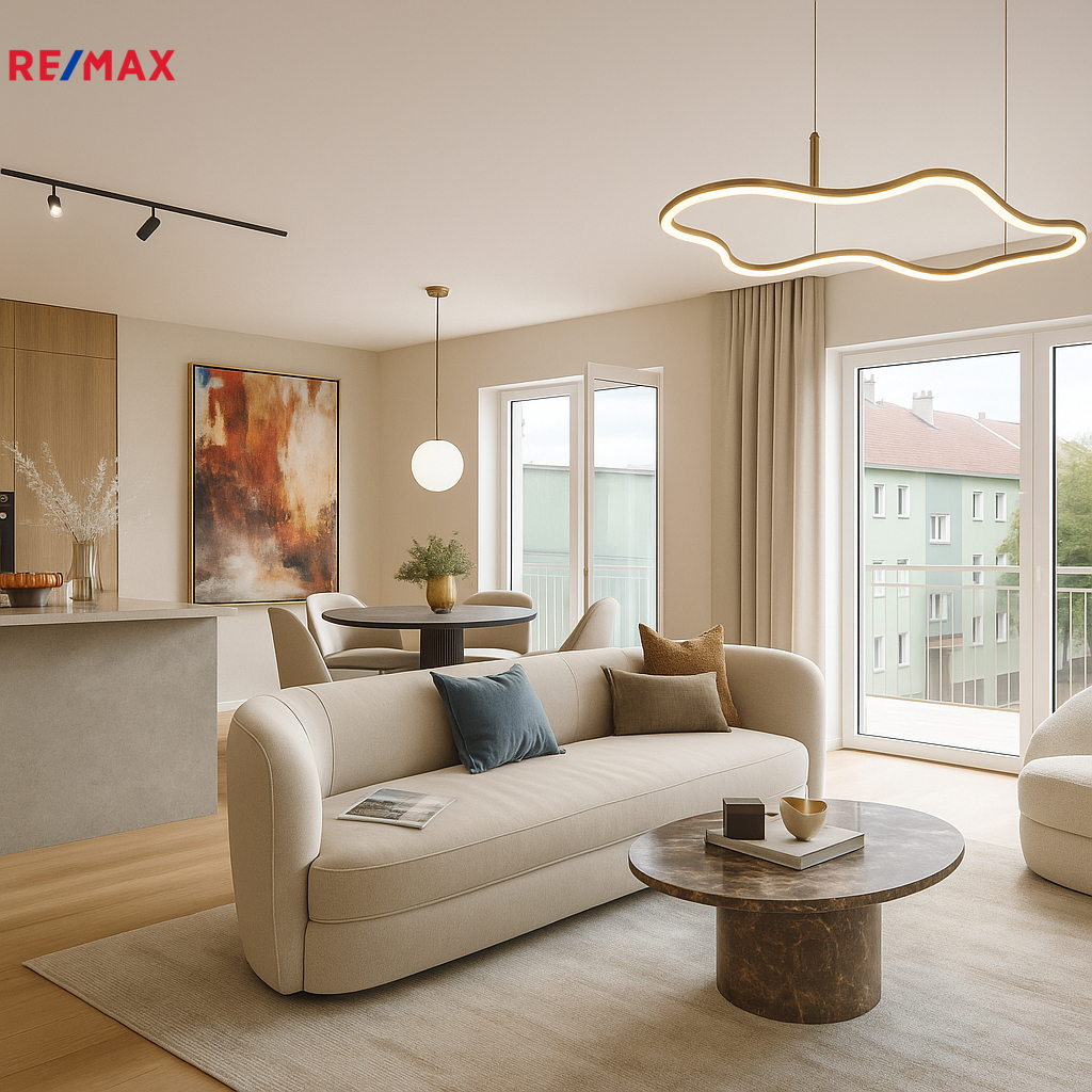 Nabízíme byt B19, 2+KK o celkové ploše 86,6 + 12 m²(balkon), který se nachází ve 3.NP. Byt disponuje velkou vstupní chodbou s možností umístění vestavných skříní. Stejně jako v ostatních bytech je WC odděleno od koupelny. Byt má velkou obytnou místnost s kuchyní (36,3 m2) a přímým vstupem na terasu a prostornou ložnici. V přiloženém půdorysu máte možnost si prohlédnout dispozici bytu, která odpovídá všem moderním standardům. Byt bude standardně vybaven dřevěnou podlahou a v koupelně a WC velkoformátovou moderní dlažbou. Finální materiály je možno samozřejmě s developerem individuálně řešit. Součásti prodejů je sklep o velikosti 2,5 m2.