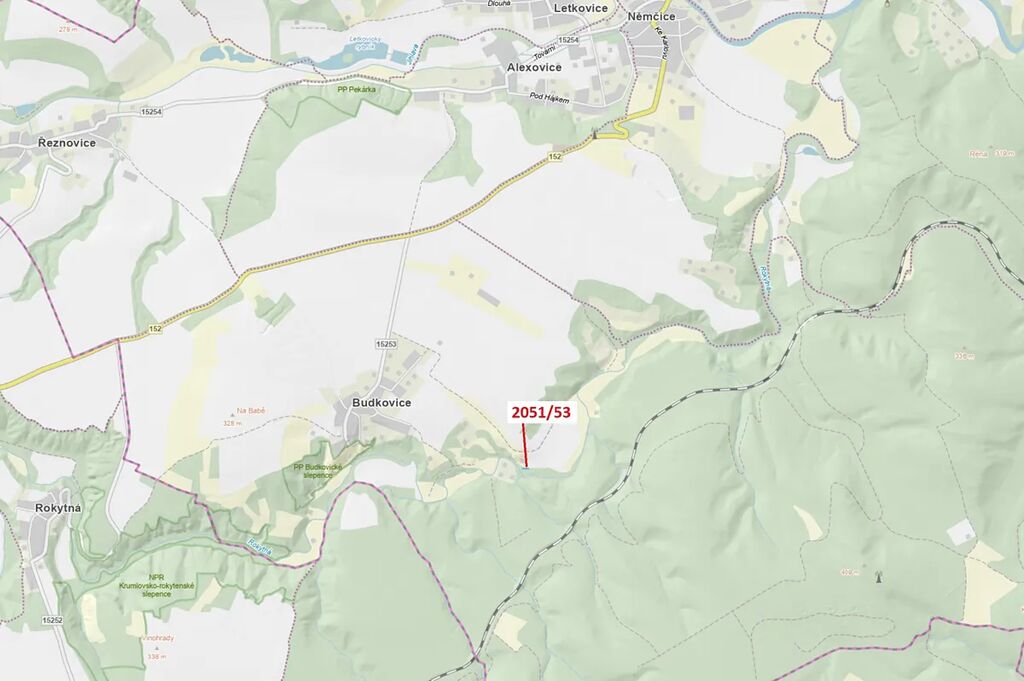 Lesní pozemek o výměře 252 m2, parcelní číslo 2051/53, podíl 1/1, katastrální území Budkovice, obec Ivančice, obec s rozšířenou působností Ivančice, okres Brno-venkov, Jihomoravský kraj.