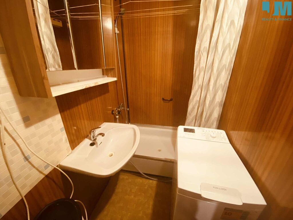 V koupelně je sprchový kout, umyvadlo, zrcadlová galerie a nová pračka. Toaleta je samostatně.