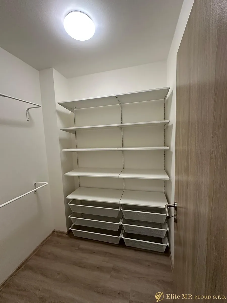 V obývacím pokoji nainstalováno stínění, v komoře regálový systém, který může sloužit jako šatna.