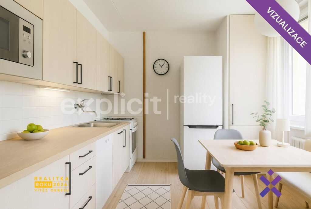 EXPLICIT REALITY a Mgr. Alice Nováková Vám s potěšením představují útulný a světlý byt 3+1 o celkové podlahové ploše 77 m², který se nachází ve 4. patře pečlivě udržovaného bytového domu v jedné z velmi žádaných lokalit Brno – Řečkovice.