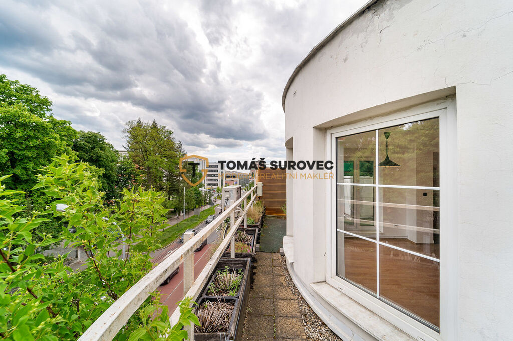 Atraktivní byt k pronájmu, který i s terasou disponuje celkovou rozlohou 98 m², se nachází ve 3. patře domu na adrese Štefánikova 159, přímo nad vyhlášenou restaurací Umbrella, možnost nastěhování od 1.12.2025.