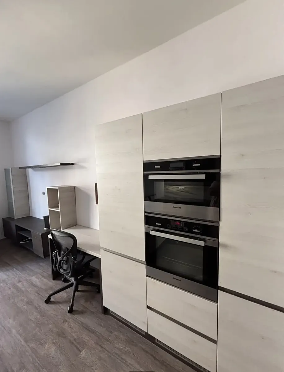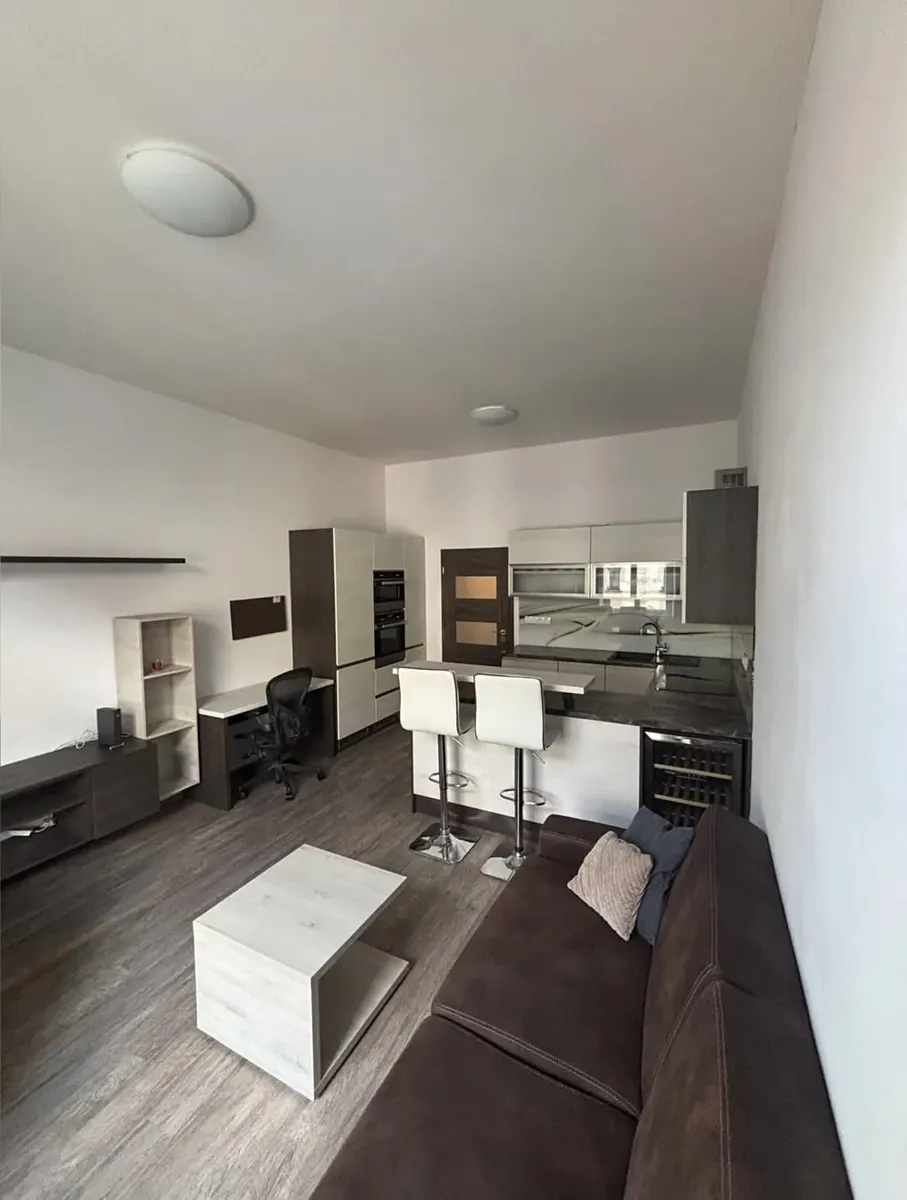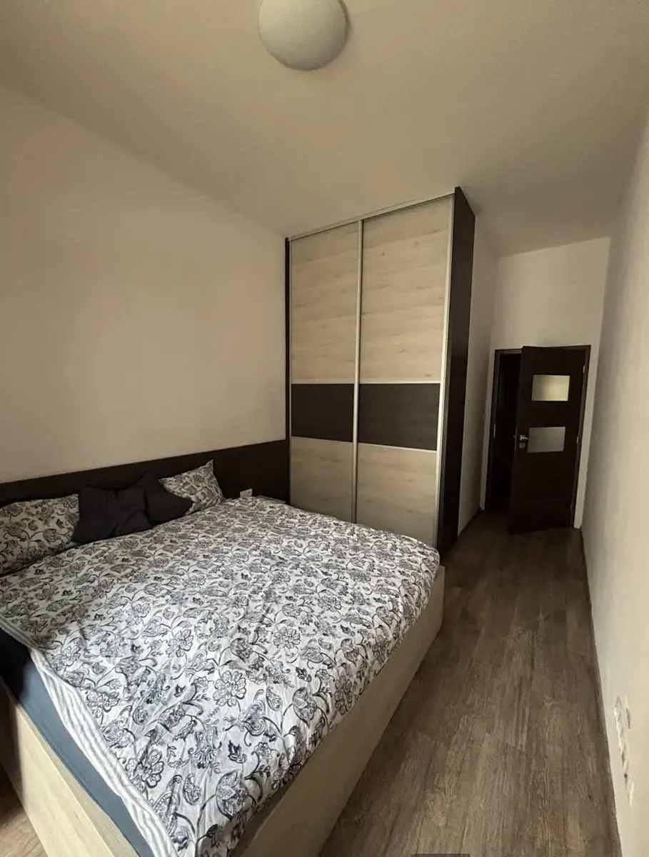 Světlý obývací pokoj s pohodlným sezením a plně vybavenou kuchyňskou linkou s dostatkem úložného místa. Kuchyně je plně vybavena (indukční deska, trouba, mikrovlnná trouba, myčka, pračka se sušičkou). Ložnice nabízí velkou vestavěnou skříň a postel. Další vestavěná skříň se nachází v předsíni, včetně botníku a úložných prostor. Koupelna je vybavena velkým sprchovým koutem. K bytu náleží také balkon vhodný k posezení a sklep poskytující další úložný prostor.