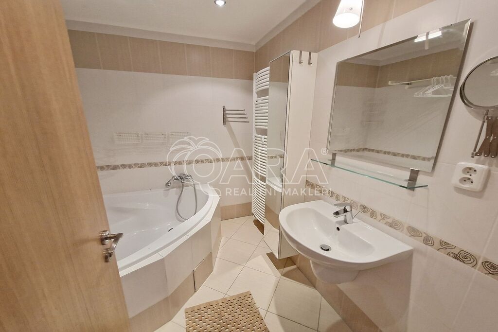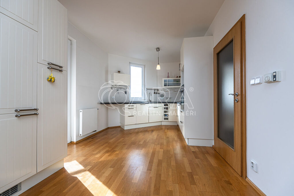 Nabízíme pronájem světlého a nezařízeného bytu 3+kk, 88 m2 + balkon, 5 m2, ul. Tlumačovská, Praha 5 - Stodůlky. Byt je ve 14 podlaží a má nádherný výhled. Orientace oken na jih, východ a západ. Byt je zařízený kuchyňskou linkou IKEA s vestavěnými spotřebiči (lednice s mrazákem, myčka, indukční varná deska, el. trouba, digestoř), v pokojích jsou skříně. V předsíni jsou skříně. V koupelna s vanou a umyvadlem, samostatné WC je s umyvadlem. K bytu patři sklep a parkovací místo v podzemních garážích. Výborná dopravní dostupnost: zastávka autobusu přímo před domem, metro Lužiny cca 7 min pěšky. Měsíční poplatky jsou 4.700,-Kč, plus elektřina a internet. Jistota ve výši 50.000,-Kč. Provize RK je 36.000,-Kč vč. DPH. Byt je volný od 15.10. Volejte a domluvte si prohlídku.