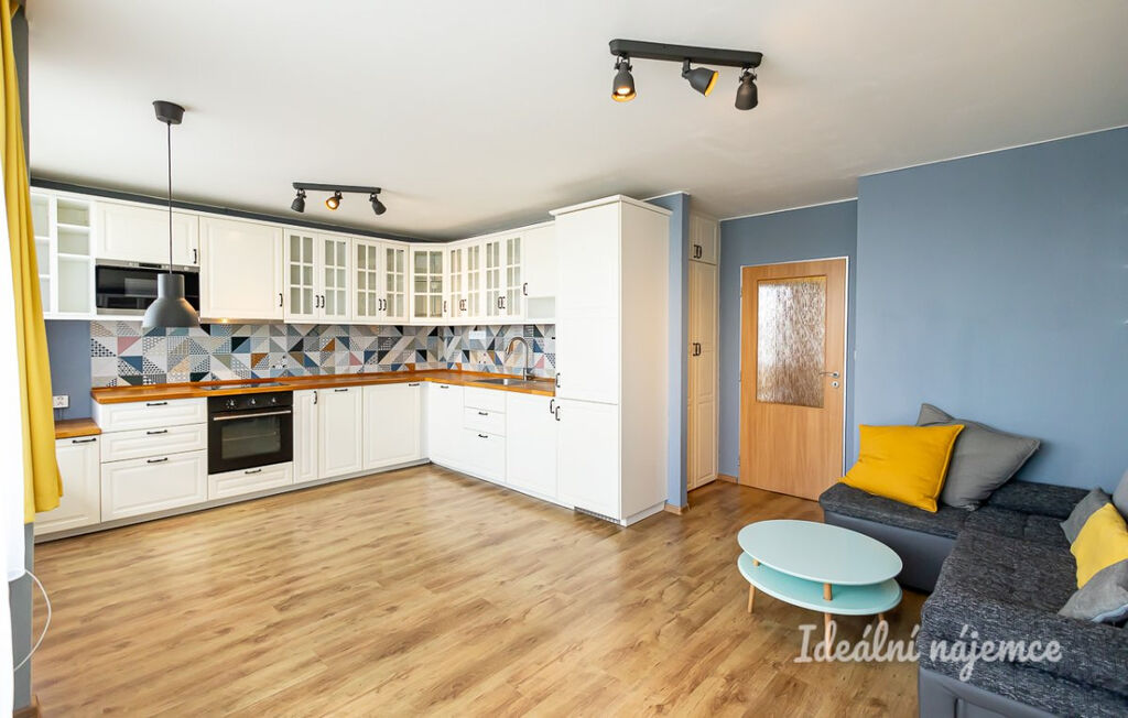 Nabízí se částečně vybavený. V prakticky navržené kuchyni najdeme vestavěné spotřebiče - pračku, lednici, myčku, elektrickou troubu, indukční varnou desku s digestoří a mikrovlnnou troubu. V otevřené obývací části najdeme rozkládací pohovku s konferenčním stolkem, komody a vestavěné úložné prostory. Součástí ložnice je manželská postel s úložnými prostory a vestavěná šatní skříň. Druhý pokoj se nabízí nezařízený, je tak možné jej využít jako dětský pokoj či pracovnu. V koupelně nalezneme vanu, umyvadlo se skříňkou a částečně oddělenou toaletu. Předsíň nabízí další úložné prostory ve formě vestavěné šatní skříně a botník.