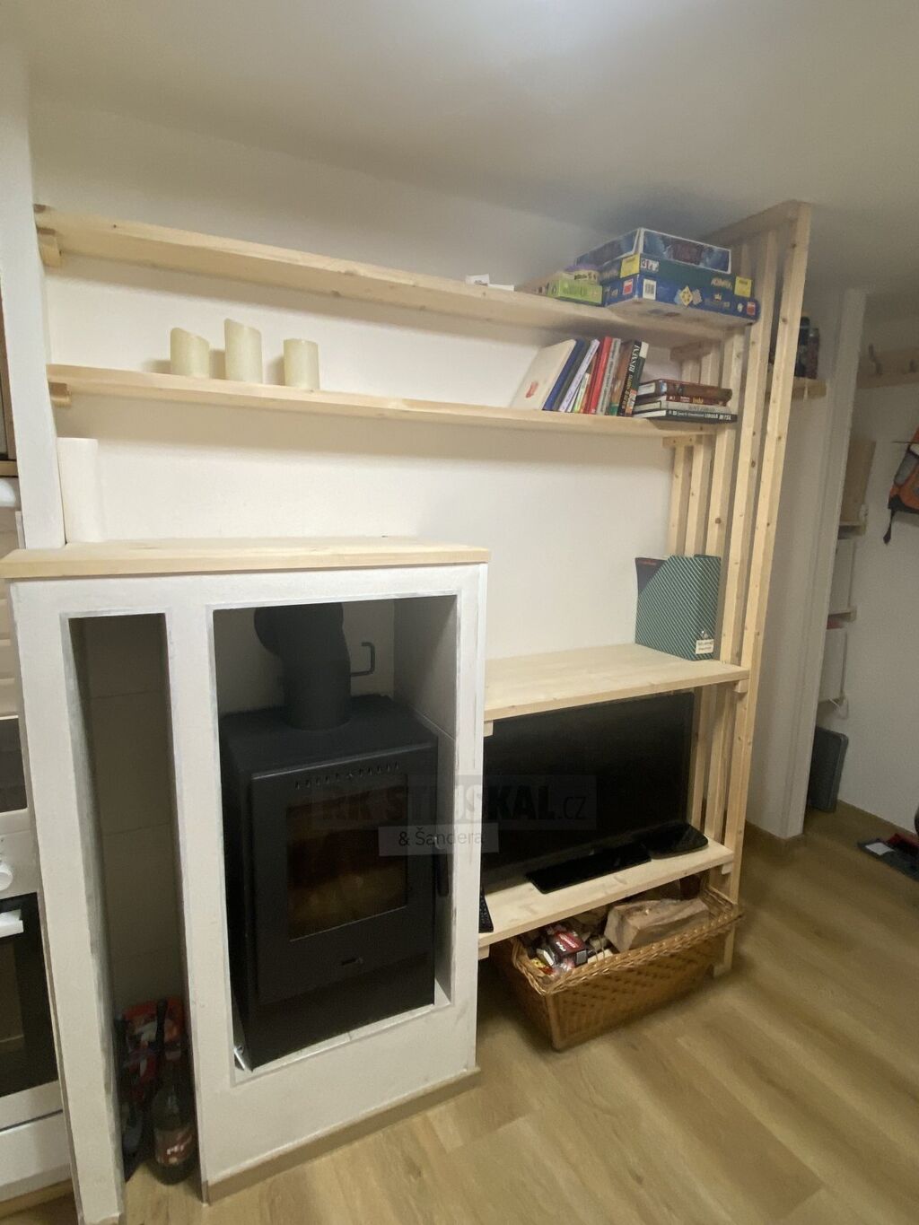 K prodeji mezonetový apartmán - nebytový prostor, umístěný v přízemí domu. Tato jednotka je o velikosti 32,2 m2. Skládá se z větší místnosti s kuchyňskou linkou, jídelním koutem, sedačkou, krbovými kamny, policovým systémem na TV, malým stolkem a velkou manželskou postelí. V mezonetu jsou dvě postele a stolek. Movité věci jsou v ceně prodeje. V koupelně se nachází sprchový kout, umyvadlo, zrcadlová skříňka nad umyvadlem a WC. V malé předsíni je umístěn botník s věšákem. Kuchyňská linka - lednice s mrazničkou, sporák, mikrovlnná trouba, dřez, vše včetně vybavení. Další uzamykatelné úložné prostory pro tuto jednotku se nacházejí ve společné chodbě domu.
