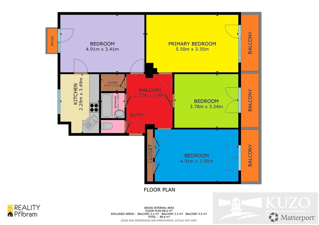 • Dispozice a Prostor: Praktický a velmi žádaný byt 4+1 (3 ložnice, obývací pokoj a samostatná kuchyně). Výměra dle katastru činí 85,5 m². Všechny prostory si můžete detailně prohlédnout v moderní 3D vizualizaci (Matterport, který uvadí plochu 88,6m2).