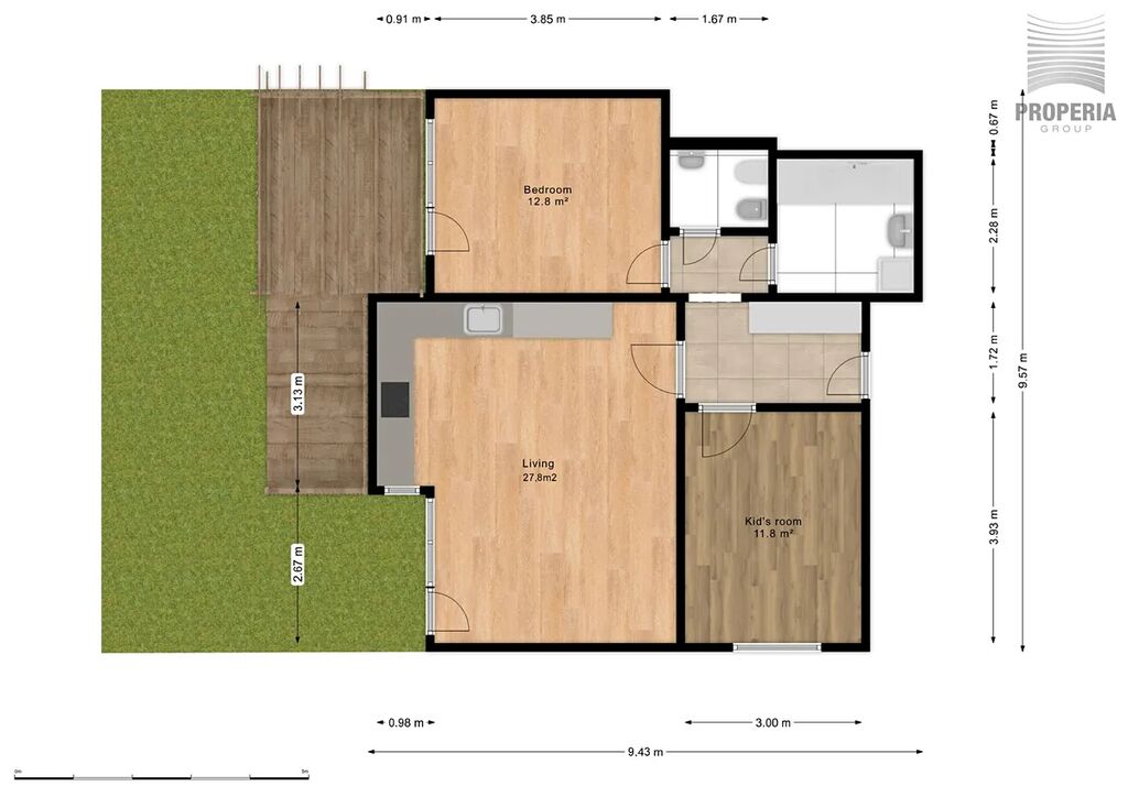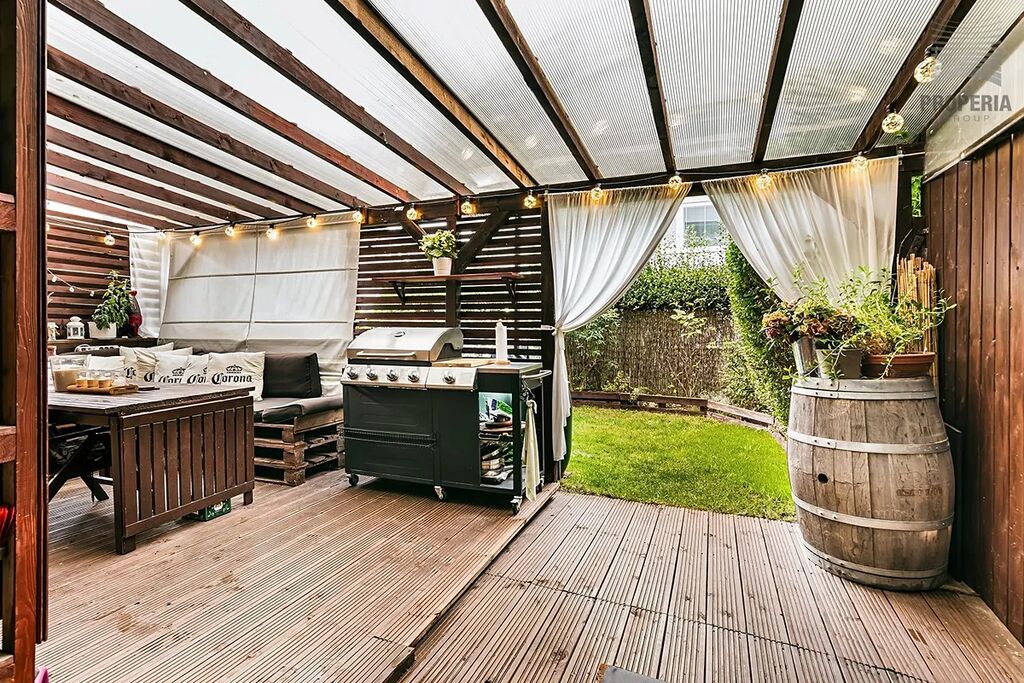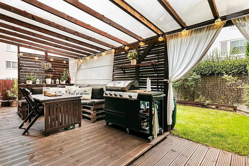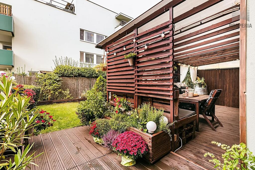 Tento moderní byt o rozloze 68 m² vyniká promyšlenou dispozicí a kvalitním provedením. Jeho velkou chloubou je prostorná terasa se soukromou zahradou o velikosti 62m², která vybízí k odpočinku i příjemnému posezení s přáteli. Na zahradu je přivedena voda i elektřina, což umožňuje její praktické využití a pohodlnou údržbu. Přístup na zahradu je zajištěn nejen z obývacího pokoje, ale také přímo z ložnice.