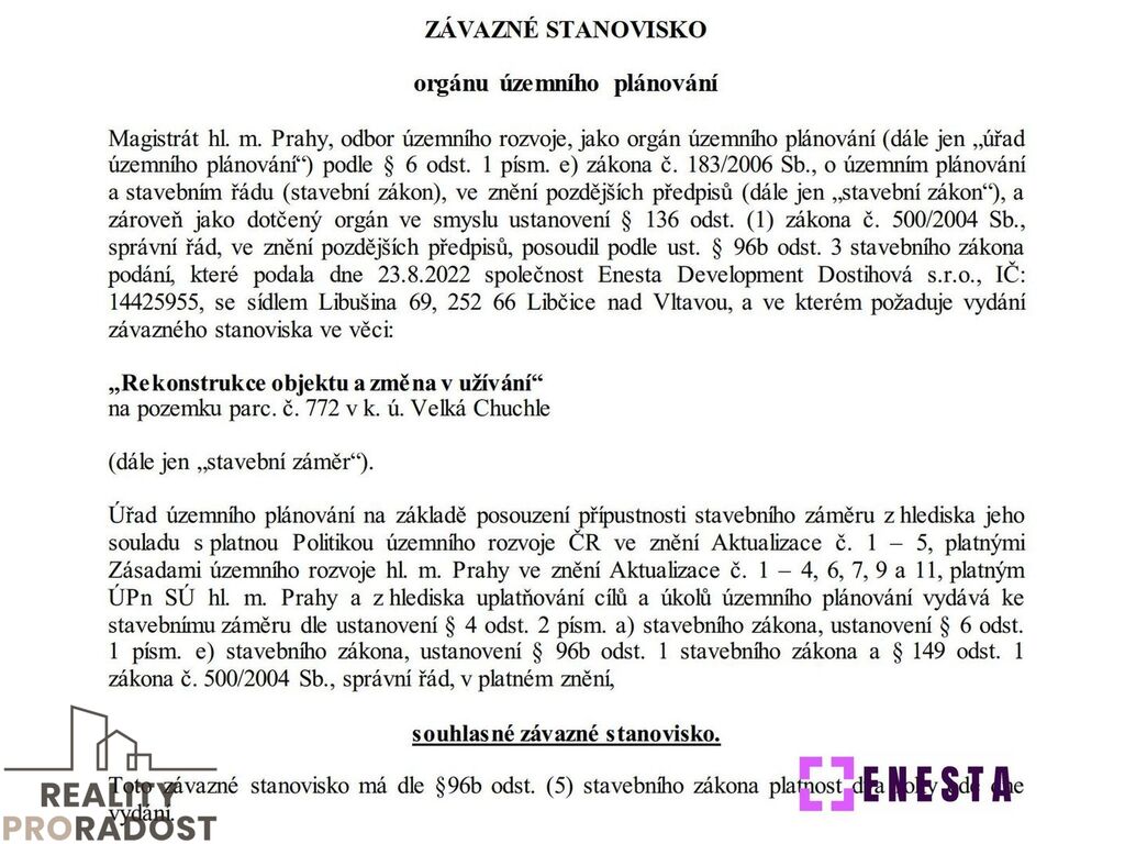 Enesta Reality s.r.o. je franšízantem společnosti Reality Proradost s.r.o.