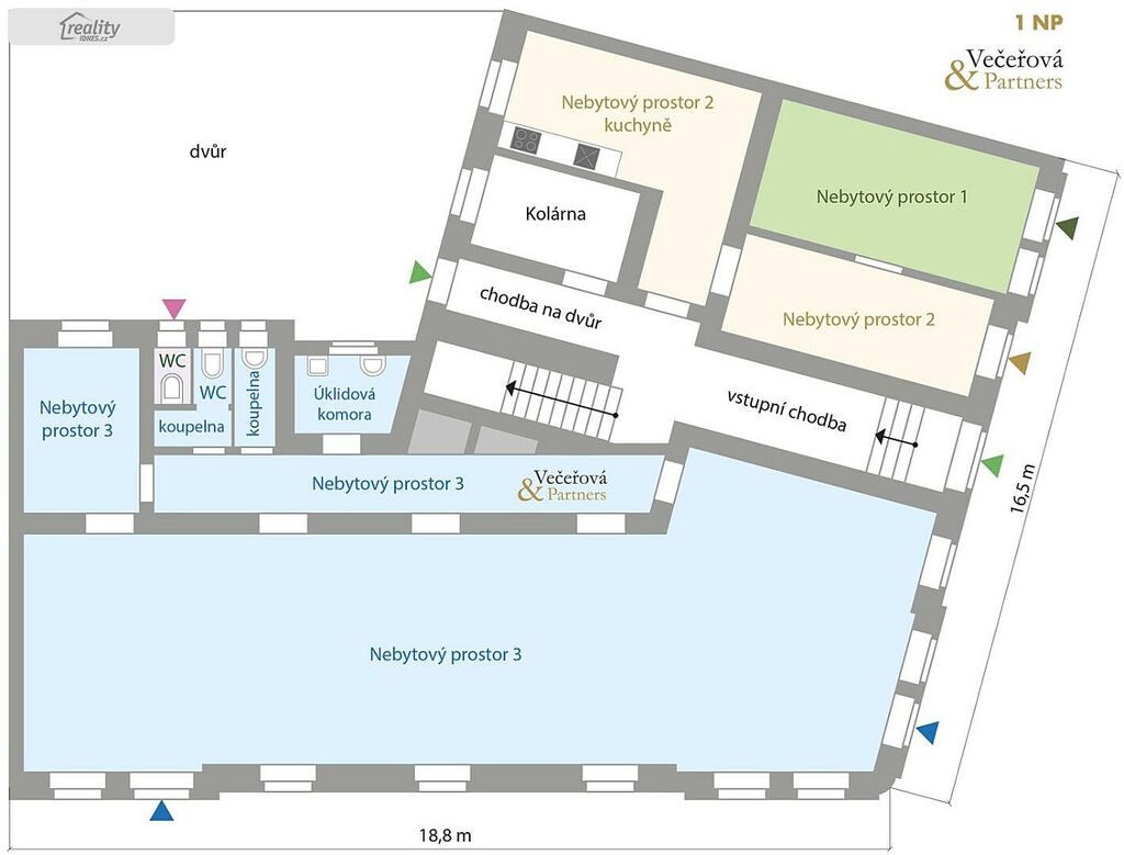 V přízemí domu jsou 3 nebytové prostory, dva z obchodů jsou pronajaté spolehlivými nájemci.