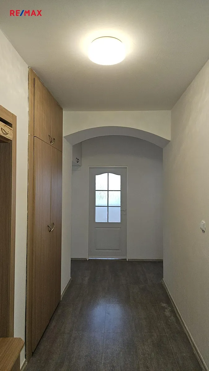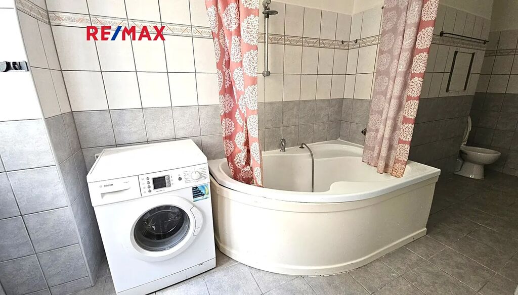 Koupelna je s rohovou vanou a toaletou. Vytápění a ohřev vody jsou ústřední etážové.