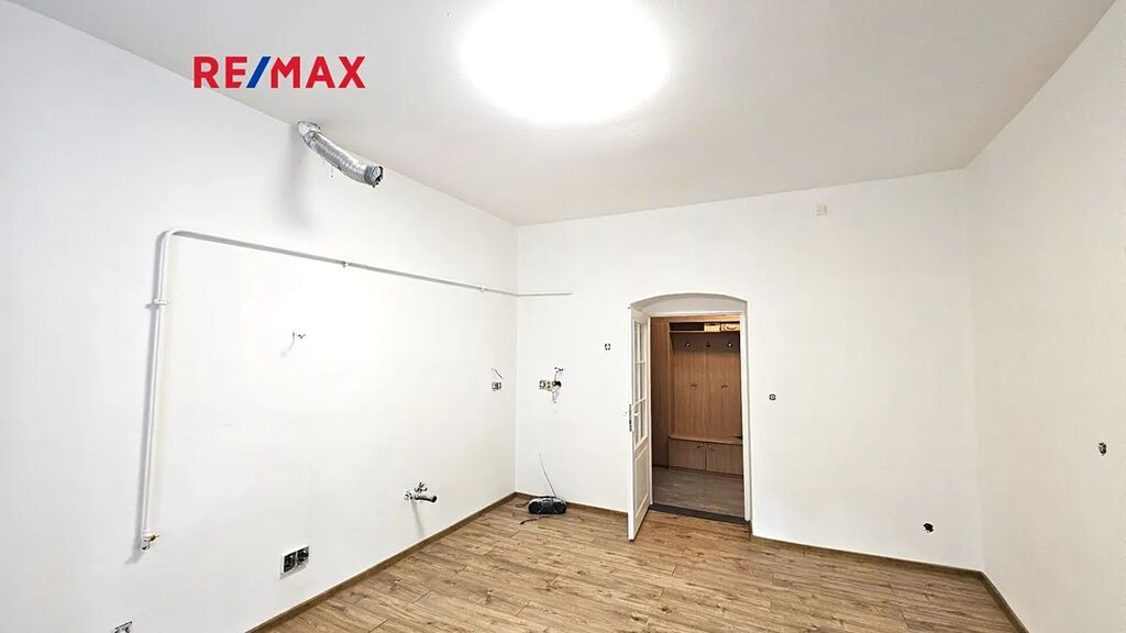 Pokoje jsou vzájemně neprůchozí, v kuchyni bude nově instalována kuchyňská linka ( na poslední fotografii této inzerce je provedení obdobné kuchyňské linky v podkrovním bytě téhož domu).