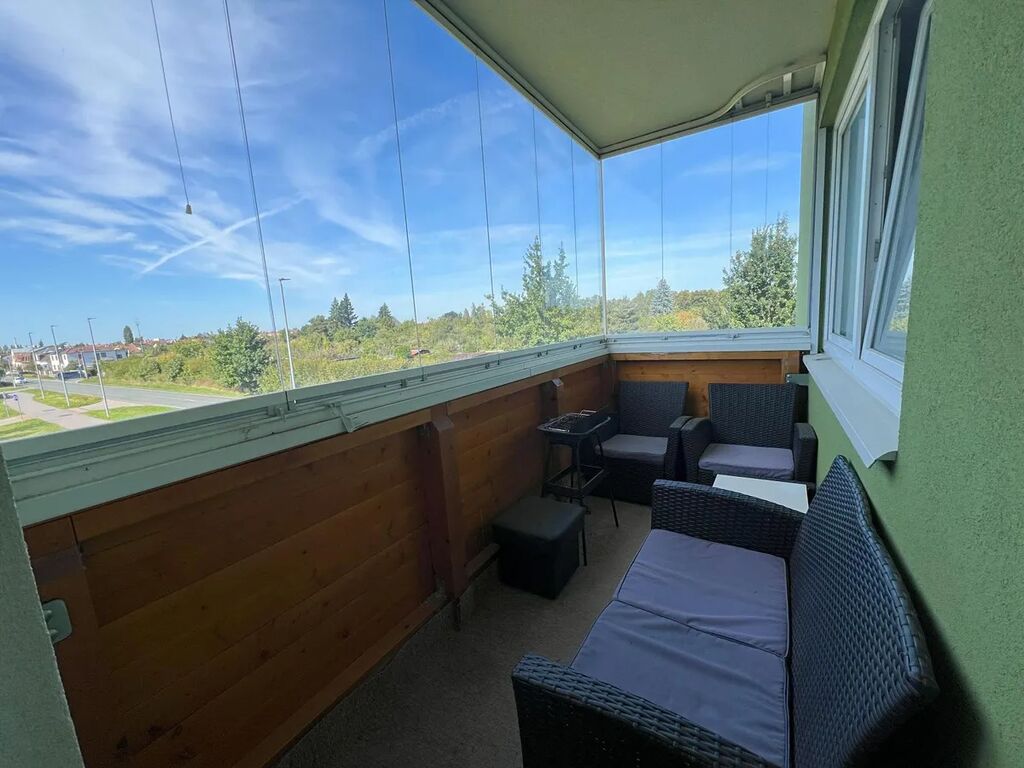 Dispozice a vybavení: Prostorný obývací pokoj s kuchyňským koutem v moderním provedení. Kuchyňská linka s vestavěnými spotřebiči a dostatkem úložných skříní. Ložnice pojme manželskou postel i skříně. Podlahy v kombinaci vinylové podlahy a dlažby. Plastová okna s dvojsklem. Byt je v udržovaném stavu, připraven k okamžitému nastěhování.