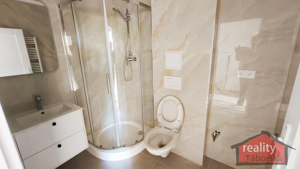V obývacím pokoji s kuchyňským koutem a ložnici je laminátová plovoucí podlaha, v koupelně a na chodbě keramická dlažba. V koupelně je sprchový kout, umyvadlo, toaleta a prostor na pračku s připravenými vývody na vodu a odpad. Provedení ve standardu, není potřeba dokončovacích prací. V bytě jsou plastová tříkomorová okna a bezpečnostní vstupní dveře, které jsou uvnitř foliované. Vchodové dveře do domu mají bezpečnostní zámek ovladatelný z mobilního telefonu.