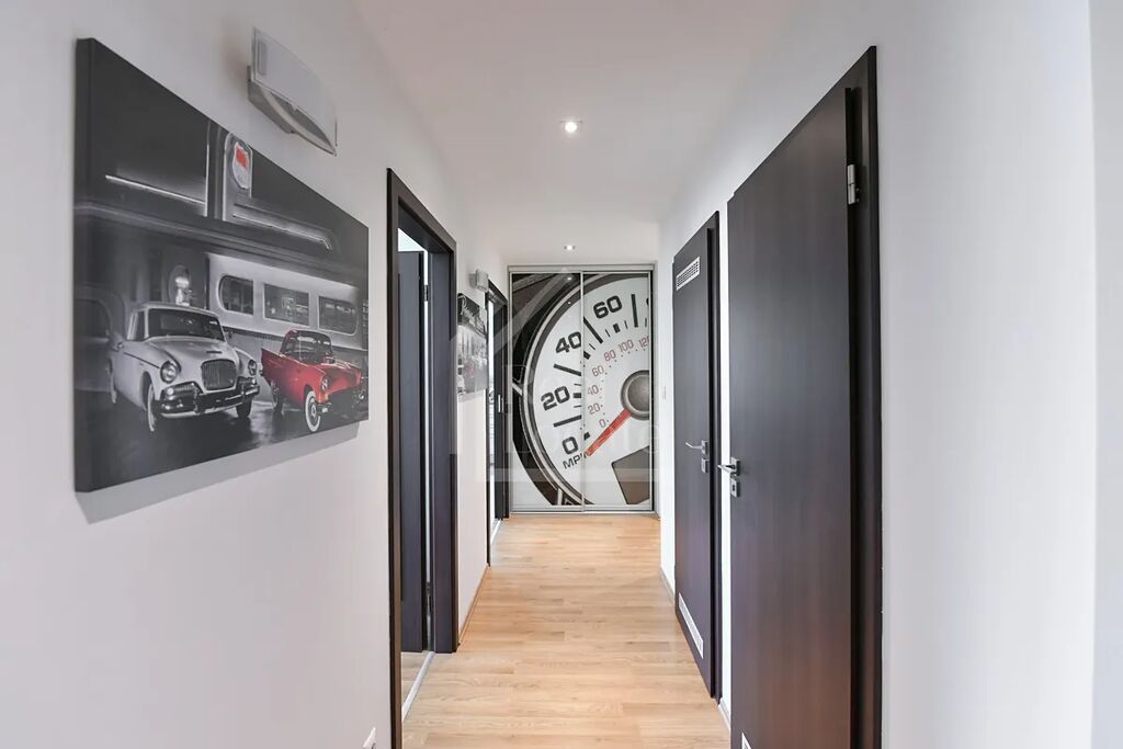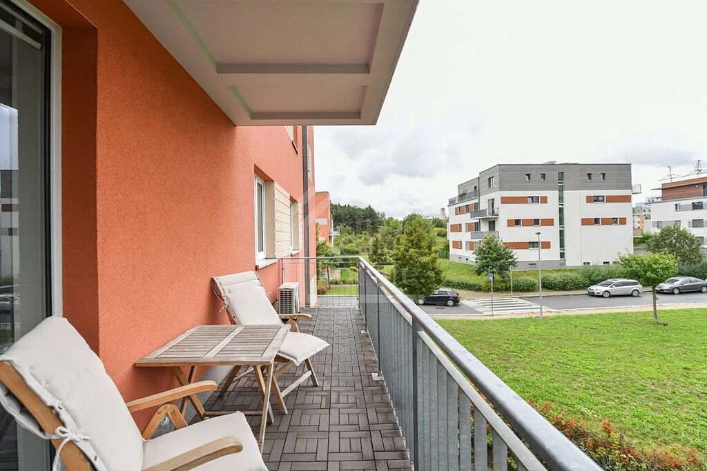 Součástí vybavení je klimatizace v ložnici. V ceně nájemného je zahrnuto 1 garážové parkovací stání.
