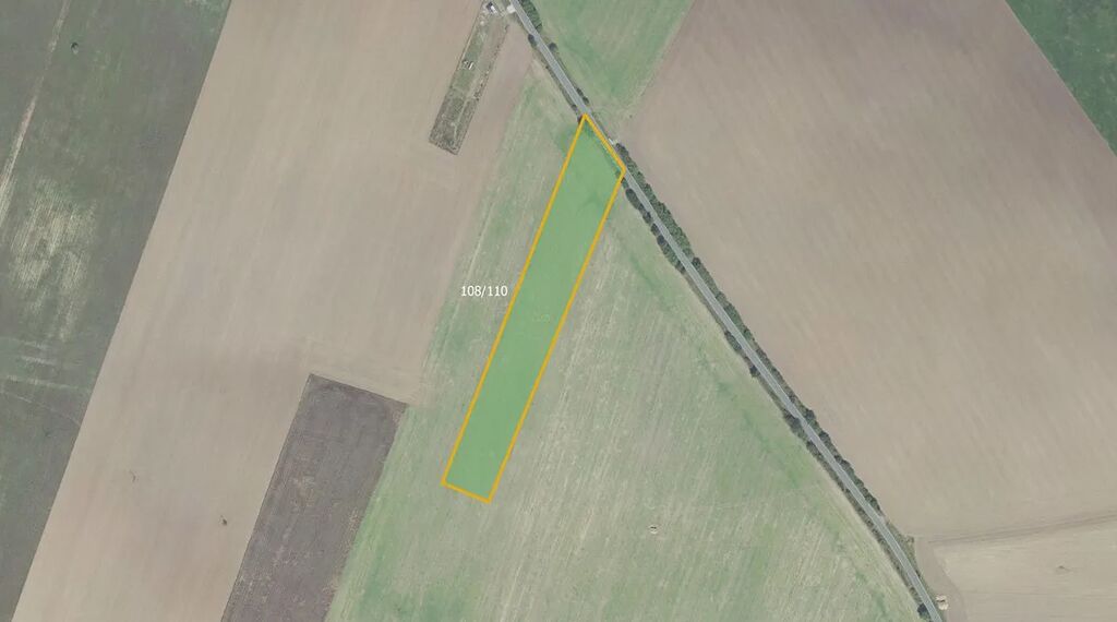 Celková výměra pozemku činí 11 309 m², přičemž celý tento pozemek je nabízen k prodeji. Druhem půdy je orná půda. Parcela má pravidelný tvar a rovinatý charakter, což umožňuje efektivní hospodaření a minimalizuje ztráty na okrajích i technologické přestávky. Umístění u cesty zajišťuje snadnou obslužnost zemědělskou technikou i dobrou logistiku.