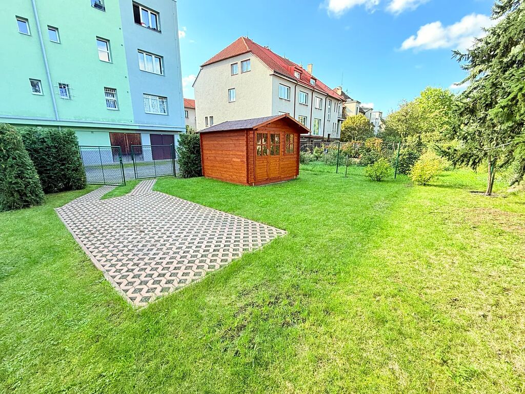 Velkým bonusem k bytové jednotce je vlastní pozemek o výměře 157 m2, kde mají současní majitelé místo pro parkování aut a také zahradní domek pro děti, pozemek je oplocený a je součástí prodeje. Vjezd na pozemek je přes bránu na dálkové ovládání vedle bytového domu. Na pozemku je přivedena elektřina.