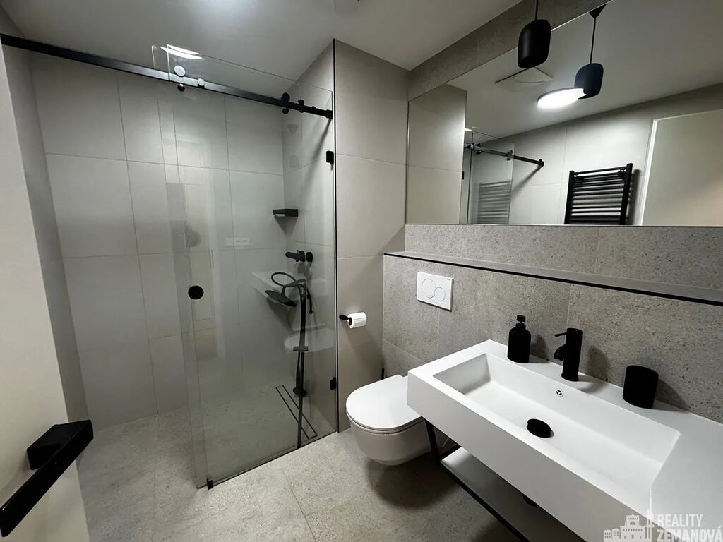 K pronájmu zcela nový, dosud nebydlený, dispozičně dokonalý a nově zařízený byt 3+kk + šatna (č. 2.1) o výměře 62,38 m2 + terasa 61,5 m²