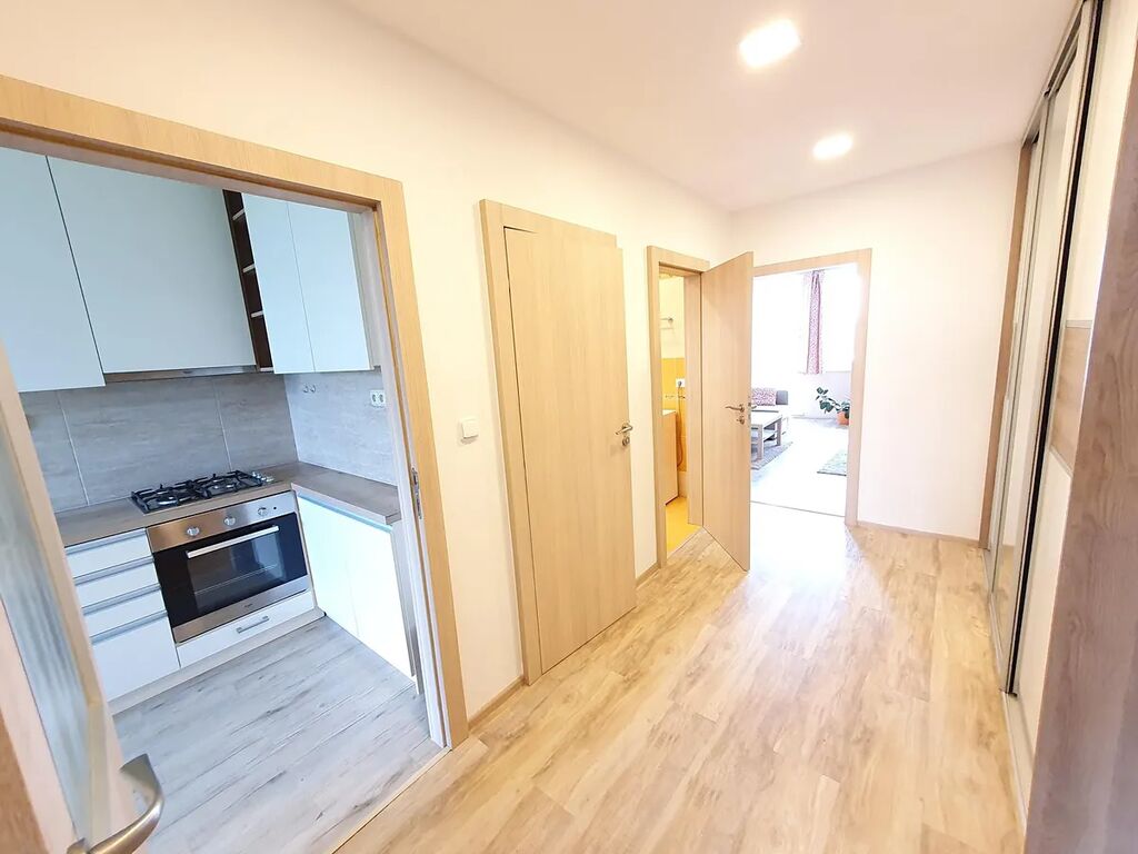 Byt je z větší části vybavený nábytkem i spotřebiči dle foto, obývací pokoj s prostornou lodžií orientovaný na jih, 2 ložnice s krásným výhledem na les, které mají v oknech žaluzie, prostorná hala s vestavěnou skříní, velká kuchyň s jídelnou, vybavená lednicí, myčkou, plynovou varnou deskou a troubou, pěkná moderní koupelna s vanou včetně skleněné sprchovací zástěny a pračkou, samostatná toaleta.