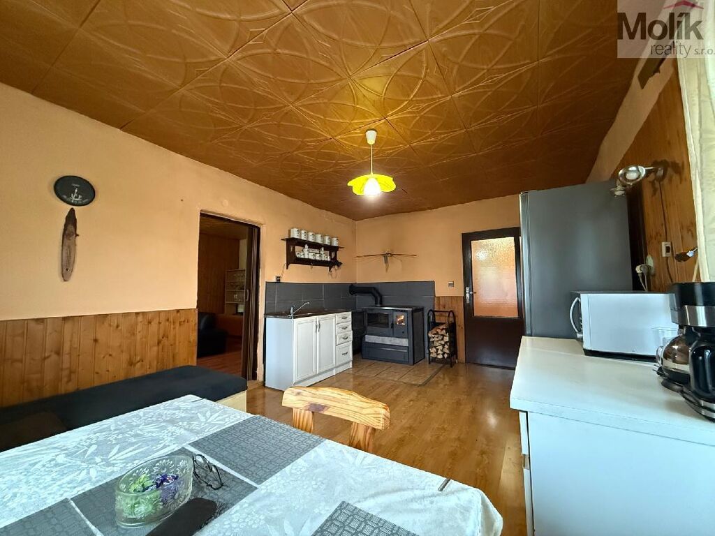Chalupa je napojena na vodovodní řad, žumpu 2 m3, elektřina 230V/400V.