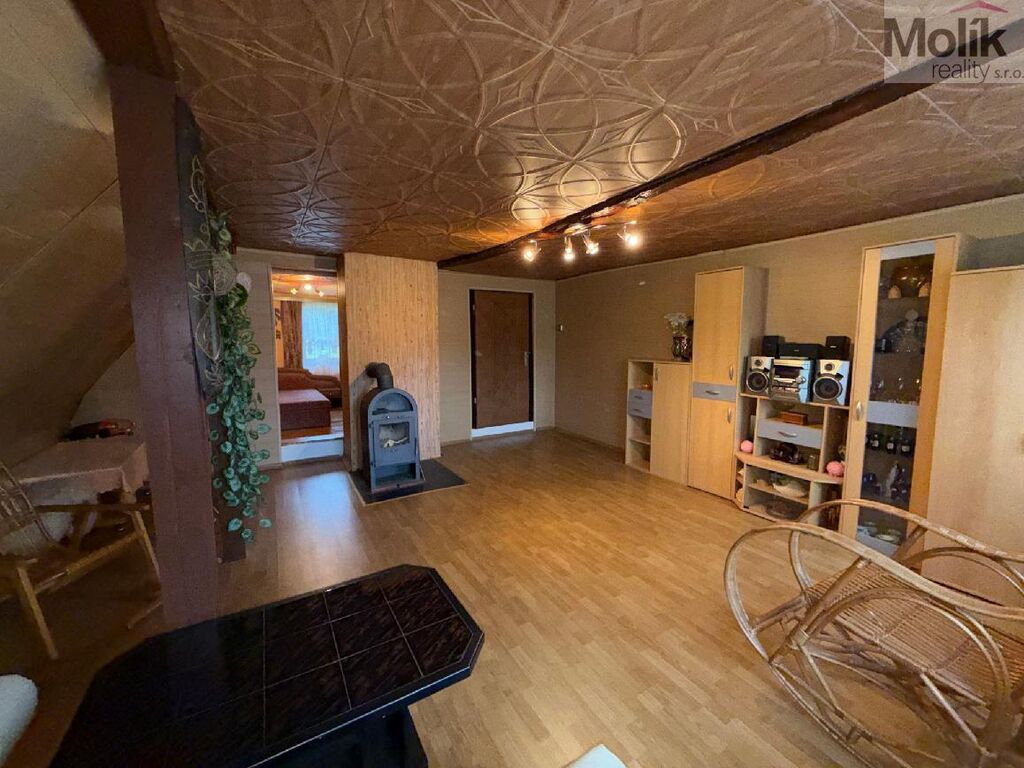 V podkroví jsou 2 pokoje, kdy jeden z nich je velmi prostorný a druhý je menší velikosti.