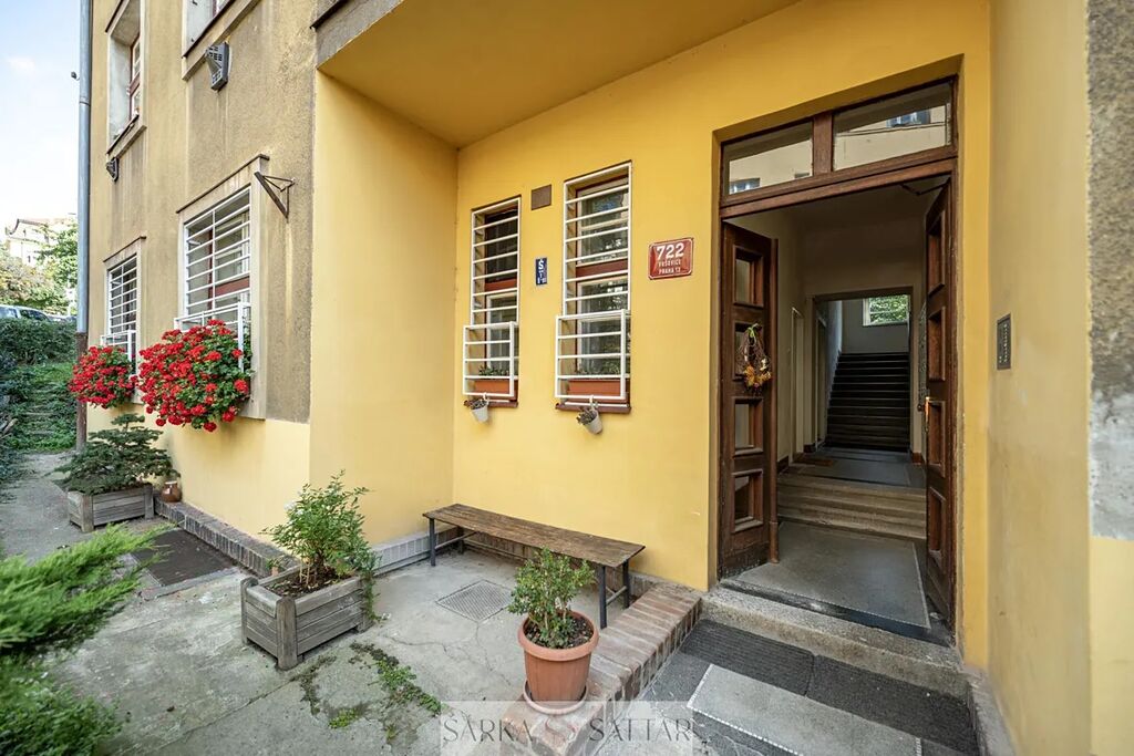 Dům je po částečné rekonstrukci, k bytu náleží podíl na půdním prostoru domu. Předzahrádka je k užívání majitelům bytů o kterou vzájemně pečují. Je zde místnost na nářadí a také kolárna.