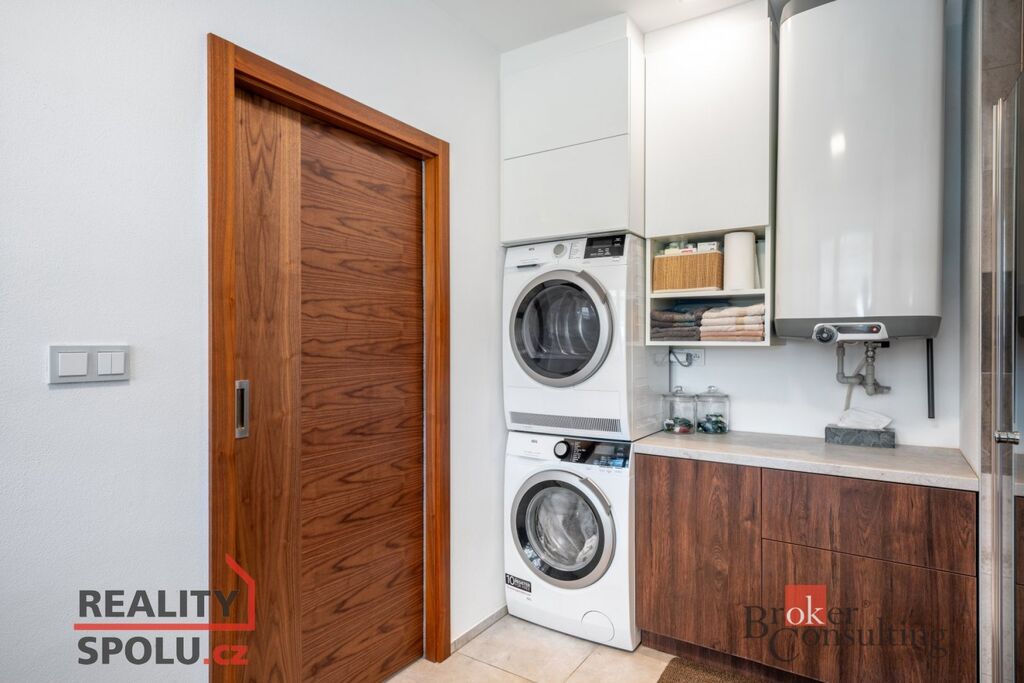 Po vstupu do domu Vás chodba zavede do dvou neprůchozích pokojů. Jeden z nich lze využít jako prostornou šatnu či ložnici, druhý je díky posuvným dveřím ideální jako pracovna, technická místnost nebo místo k relaxaci. Dále chodba pokračuje k samostatné toaletě s bidetovou sprškou a ke koupelně vybavené moderním sprchovým koutem a vanou. Zbývající dva neprůchozí pokoje jsou orientovány do zahrady a představují ideální volbu pro ložnice. Nabízejí nádherný výhled na bazén, jehož večerní odlesky jemně prosvětlují interiér a vytvářejí jedinečnou atmosféru klidu a luxusu.