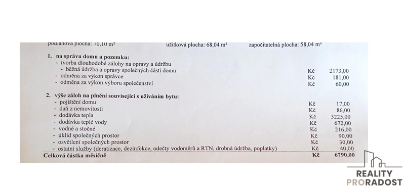 Rozpis záloh je ve fotu. Do fondu oprav se platí 2.173 Kč - je to včetně nového úvěru.