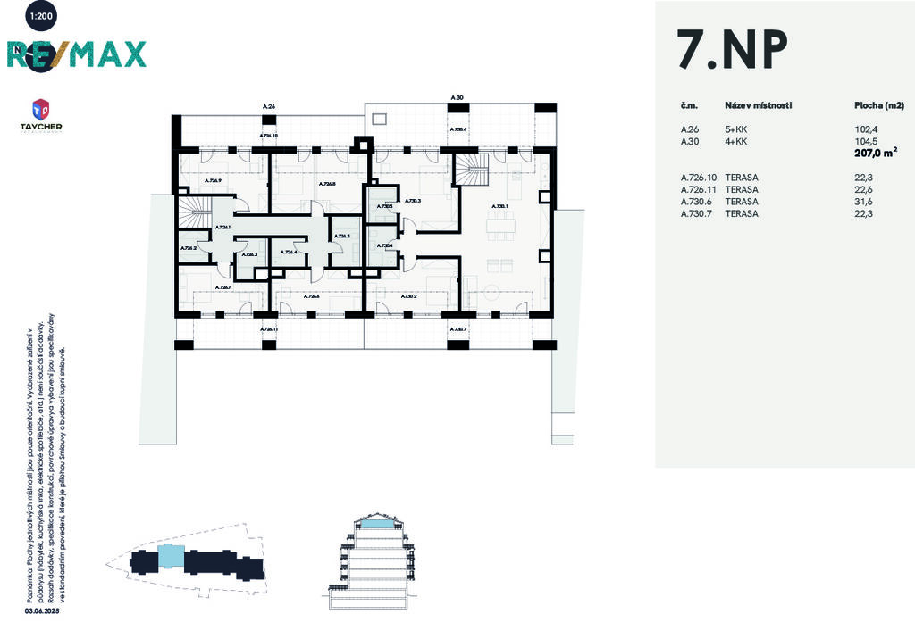 Prodej dvoupodlažního bytu 4+kk, 2 terasy, sklep, možnost garážového stání