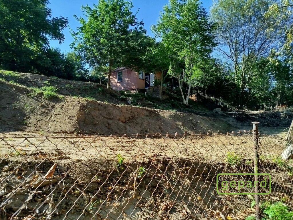Stávající zděná, v současné době nevyužitelná chata na pozemku (zastavěná plocha a nádvoří 22 m2) je připravena k demolici a k výstavbě chaty nové. Svažitý pozemek (zajímavé pozemkové kaskády), prakticky trojúhelníkového tvaru, pozemek je oplocen.