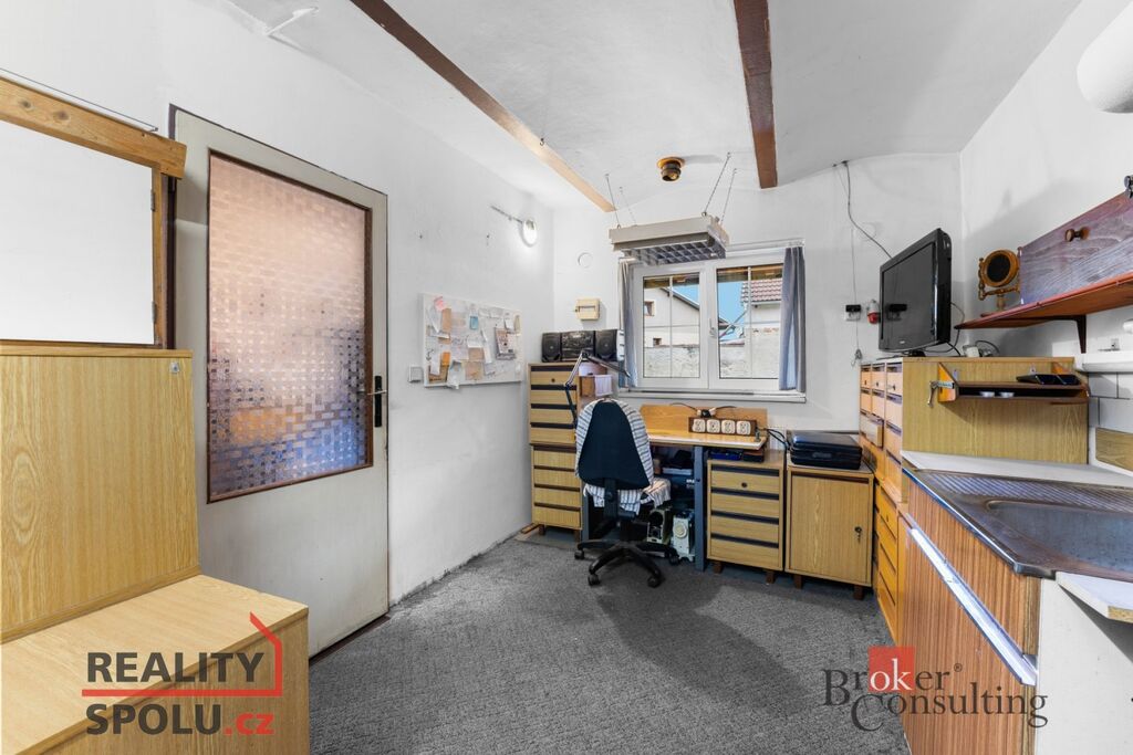 Na obytnou část plynule navazuje dílna (vhodná i k vybudování malého bytu/ vejminku) a dále prostorná stodola se vstupem na půdu – ideální pro skladování nebo budoucí přestavbu.