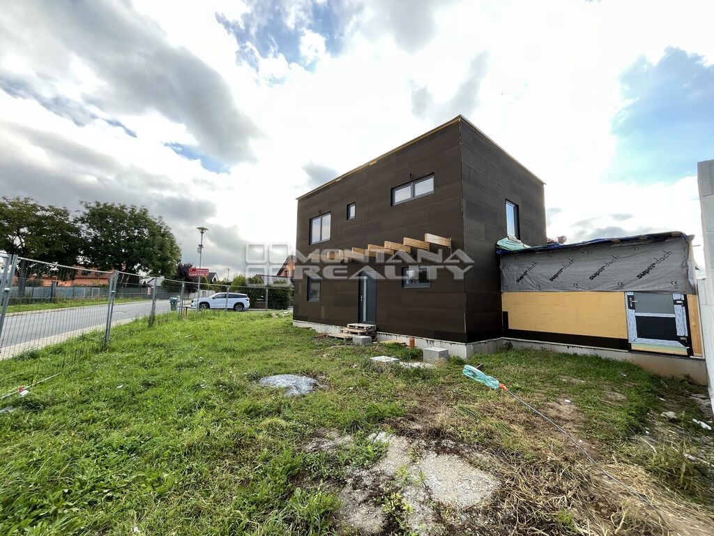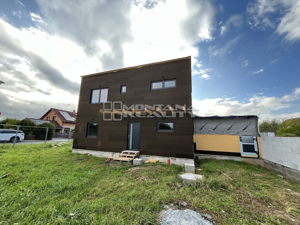 Nabízíme k prodeji novostavbu rodinného domu ve Velkém Týnci u Olomouce. Dům je velmi velkoryse řešen jako 5+kk s technickou místností navazující na dům. Parkování pod přístřeškem před domem a dalším místem na parkování pro dvě auta. Přízemí je dispozičně řešené se zádveřím a vstupní chodbou, koupelnou s WC, pokojem, obývací částí s kuchyní a prostorným masivním schodištěm do patra. V prvním patře 3 samostatné pokoje, koupelna s toaletou. Obývací část spojená s kuchyní se vstupem přes prosklený portál na terasu a pozemek. V kuchyňské části se počítá i s praktickou komorou. V patře koupelna s možností umístění vany a sprchového koutu. Dům se nabízí jako dokončená stavba pouze bez podlahových krytin, obložek s dveřmi a koupelen s tím, že nový majitel domu si je může dokončit dle svých představ. Podlahové topení a ohřev vody je řešen tepelným čerpadlem vzduch voda. Novostavba domu je řešená jako difuzně otevřená dřevostavba s provětrávanou fasádou designovými panely James Hardie. Okna jsou plastová šesti komorová s trojskly včetně vstupních dveří. Novostavba má nachystanou přípravu na venkovní žaluzie a klimatizaci, v technické místnosti je možnost instalace toalety. Celková užitná plocha domu činí 149 m2, dále pak zastřešené venkovní stání o výměře 28 m2 a pozemek o celkové výměře 502 m2. Dům je napojen na inženýrské sítě, a to vodovod, kanalizaci, elektřinu, dešťová voda je svedena do akumulační nádrže s přepadem. Energetická náročnost stavby je B – velmi úsporná. Velkou výhodou je umístění domu, jedná se o rohový dům na ulici Podštampilí ve Velkém Týnci. Dokončení nemovitosti se plánuje na jaro 2026. Cena nemovitosti 11.000.000,- Kč, včetně provize a právních služeb realitní kanceláře. Možnost financování úvěrem zdarma našim partnerem. Více informací Vám rád zodpovím osobně.
