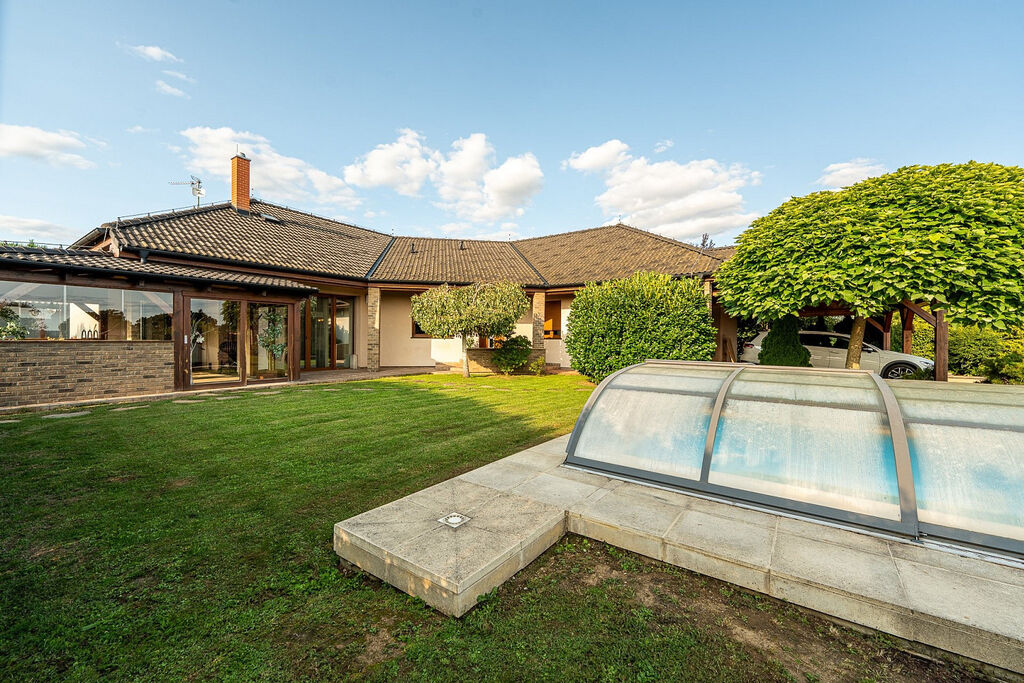 Hledáte moderní, prostorný a energeticky úsporný dům v klidné lokalitě kousek od Prahy?Nabízíme k prodeji krásný rodinný dům o dispozici 6+kk s velkou zahradou a bazénem v klidné obci Libeř – Libeň, jen pár minut od Dolních Břežan či Vestce u Prahy. Dům je postaven z kvalitních materiálů a nabízí vysoký komfort i nízké provozní náklady.