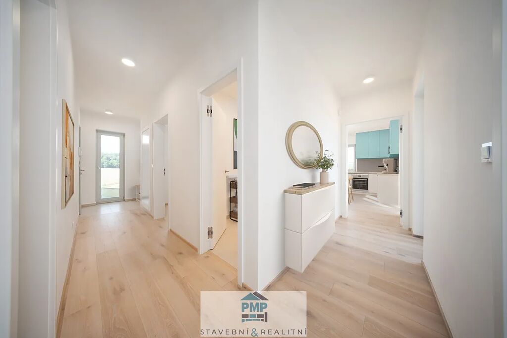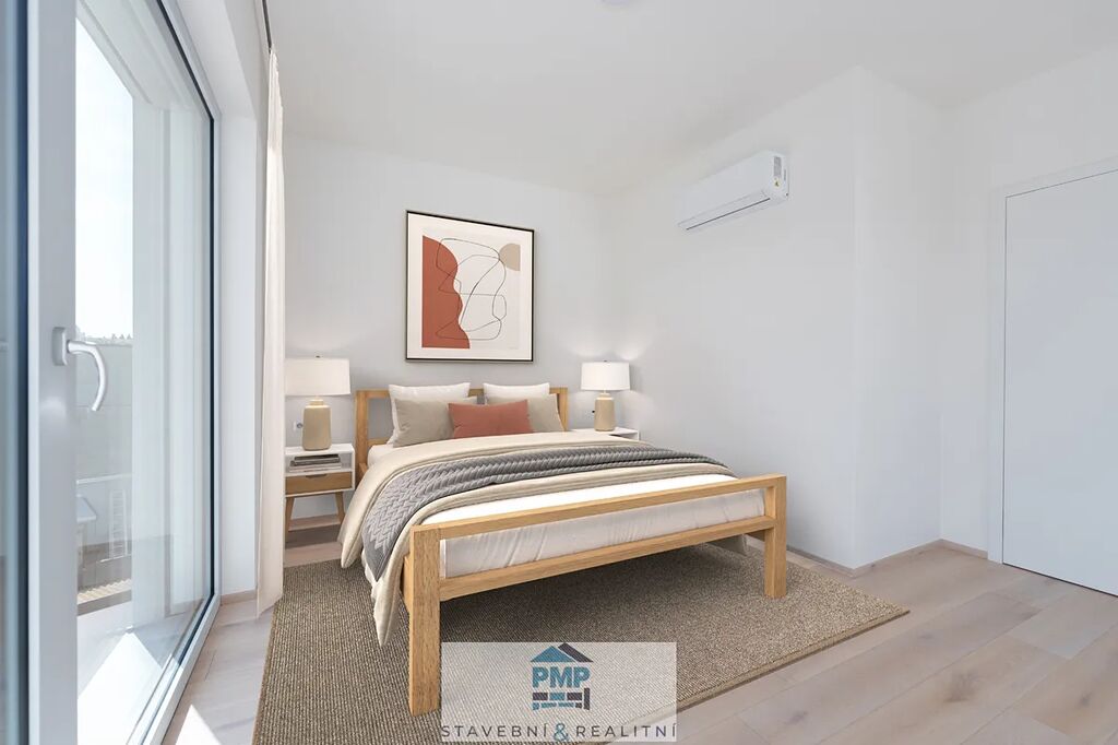 Byt je vybaven klimatizací v každé obytné místnosti, která zajistí příjemné prostředí i v horkých letních dnech. O vytápění a ohřev vody se stará centrální tepelné čerpadlo NIBE vzduch–voda, které je napojeno na podlahové teplovodní vytápění. Moderní standard doplňují dubové lepené podlahy, hliníková okna s izolačním trojsklem a venkovní žaluzie na elektrický pohon. Samozřejmostí je centrální vysavač, příprava na fotovoltaickou elektrárnu a využívání dešťové vody, stejně jako garáž s přípojkou pro wallbox a příprava na optický internet. Tento byt tak nabízí nejen útulné bydlení, ale i technickou připravenost pro budoucnost.