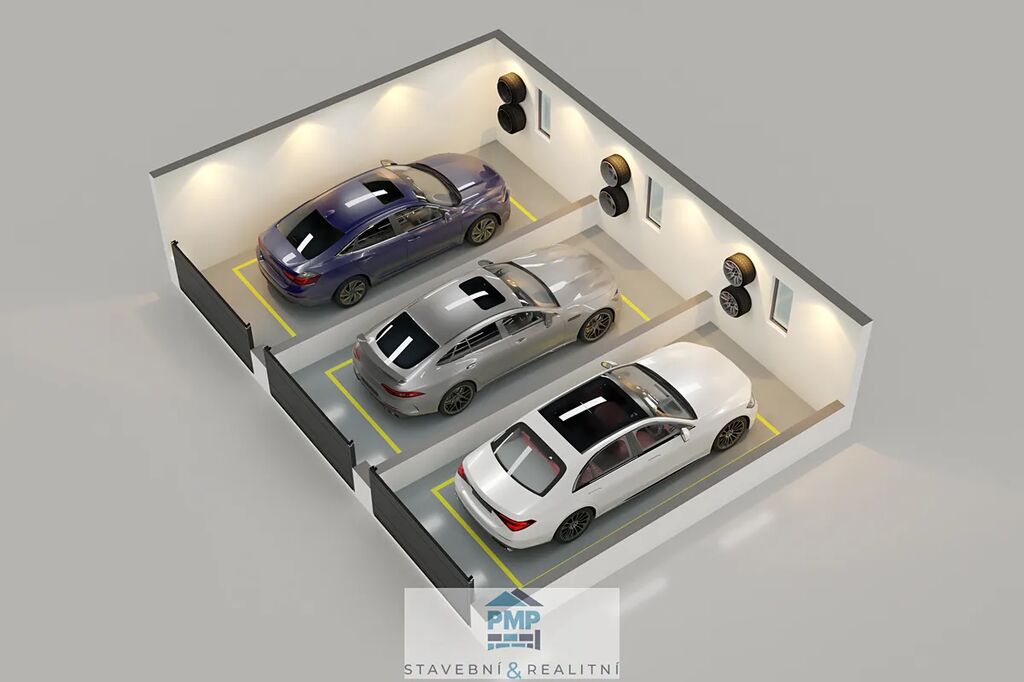 Součástí bytu je také garáž s nadstandardní hloubkou 7 metrů a průjezdní výškou vrat přes 2 metry, která je vhodná i pro větší vůz či motocykl. Navíc k bytu patří i vlastní venkovní parkovací stání.